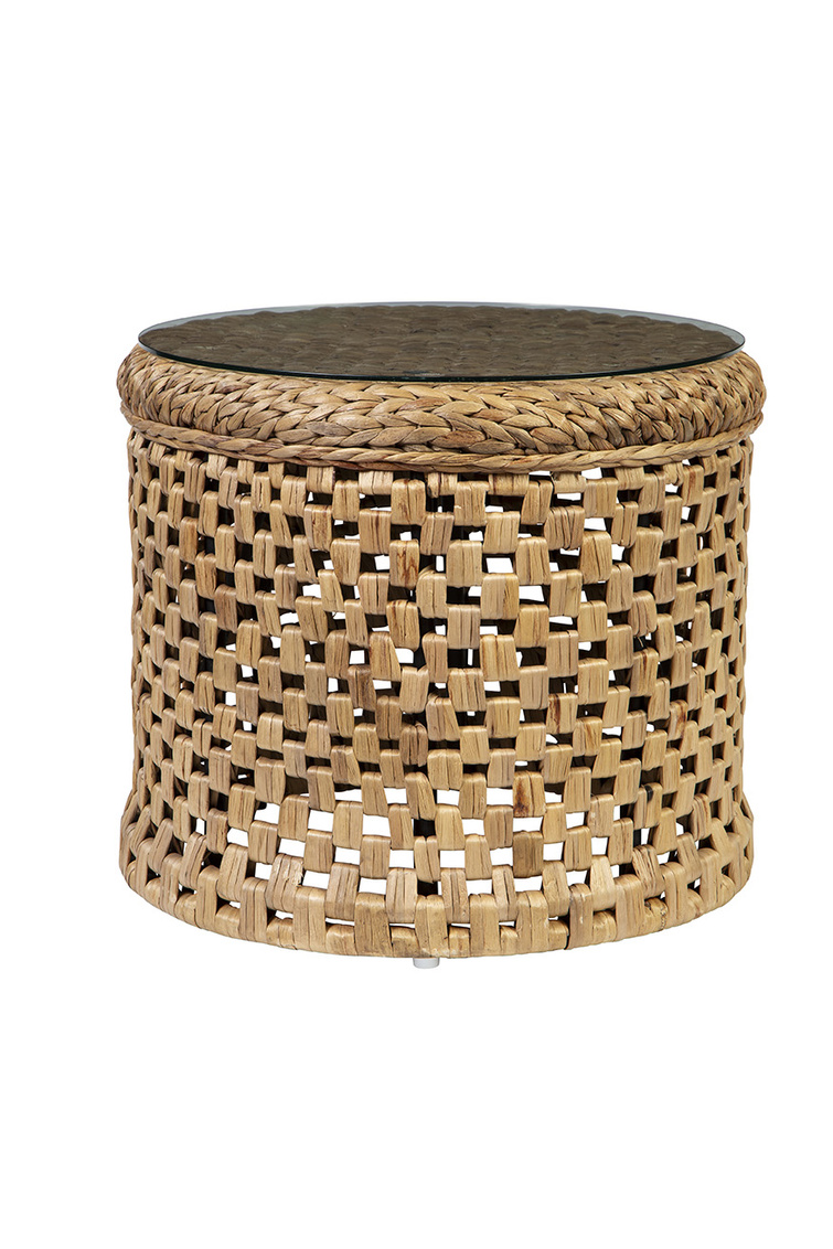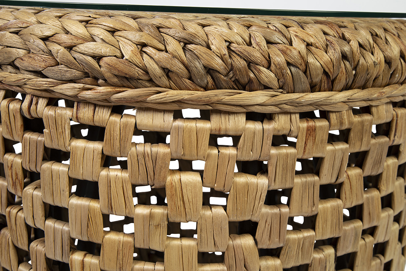 This charming end table features an open weave on the sides and a tightly woven top protected by a circle... Show more