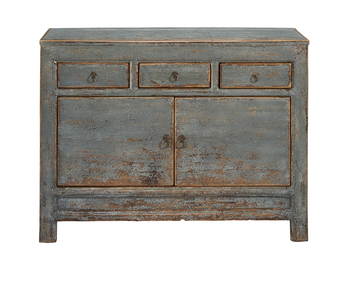 A true find, this sideboard is one of our curated items which will vary in size due to its antique status. We refurbish and refinish this reclaimed pine sideboard in a lovely robins egg blue which is rubbed through to the honey pine. Within the cabinet is a full width removable shelf. While size may vary, the design impact will always impress.