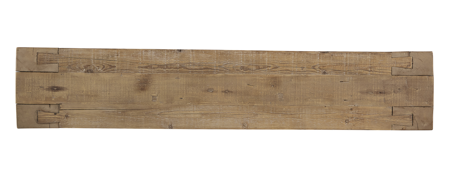 Legs and a top. That's it. Yet this handsome console is simply stunning in what it delivers. High style. Reclaimed Pine timbers reveal their history, and the exaggerated dovetails demonstrate timeless construction detail. Due to the solid four inch thick top, seasonal splits are not only expected but create the inherent beauty of this table.
