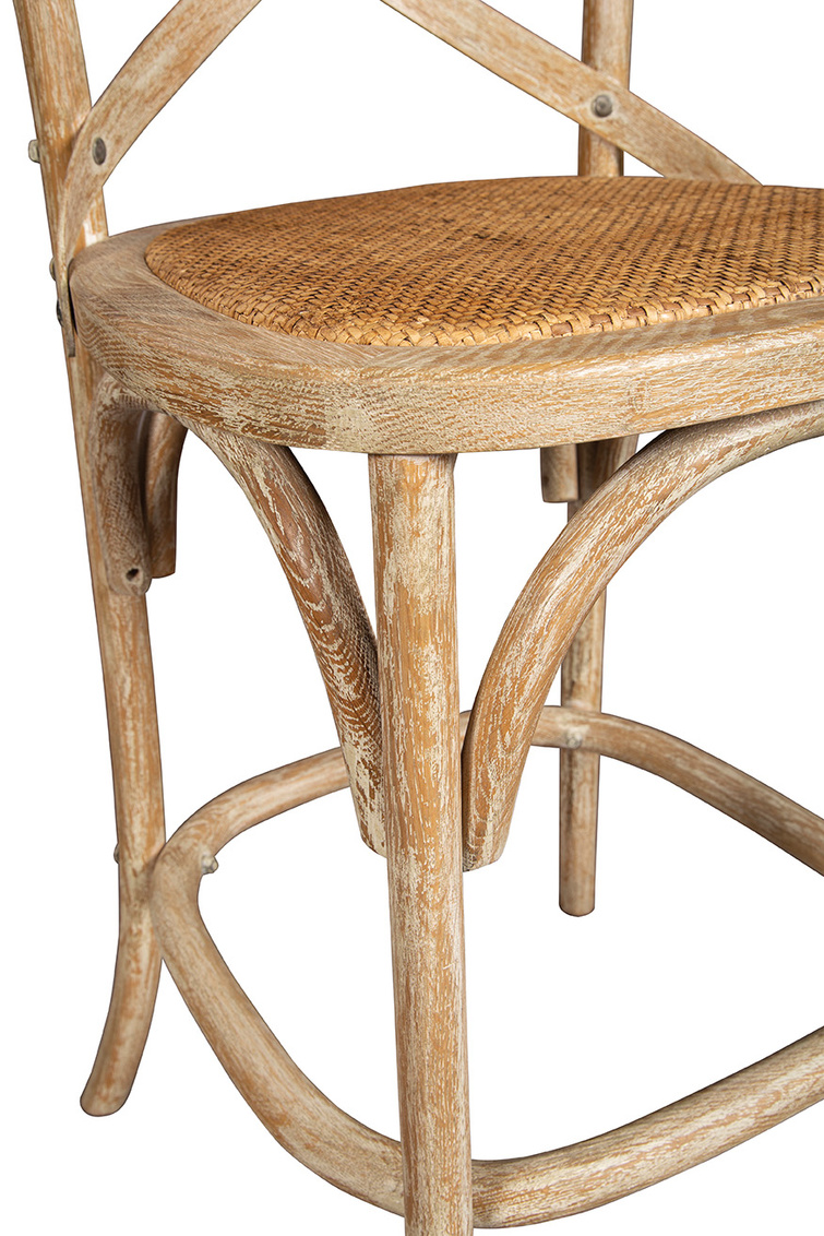 Perfect for when the kiddos come home from school and need a snack or help with their homework, this counter stool is just the thing for comfortable seating at your kitchen island. Solid oak has been steam bent to create a sturdy framework for this classic stool and the banana leaf woven seat has been reinforced with a wood base. Gently curved metal cross bracing adds a touch of contrast and additional strength.