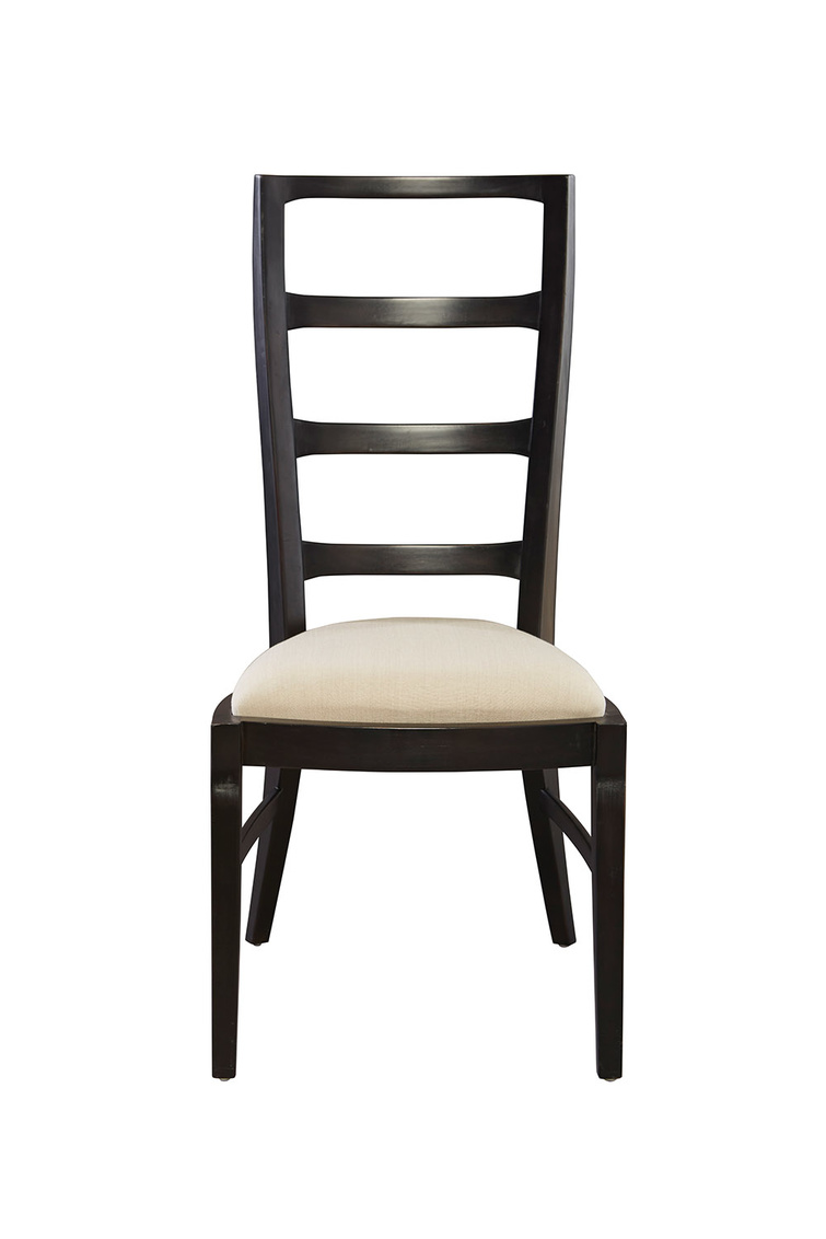 An updated sleek and streamlined version of the beloved ladderback chair, this beauty rises to new heights, making it a striking choice for your dining room. Finished in a stylish black, the chair features a drop in seat, making it a perfect DYI project!