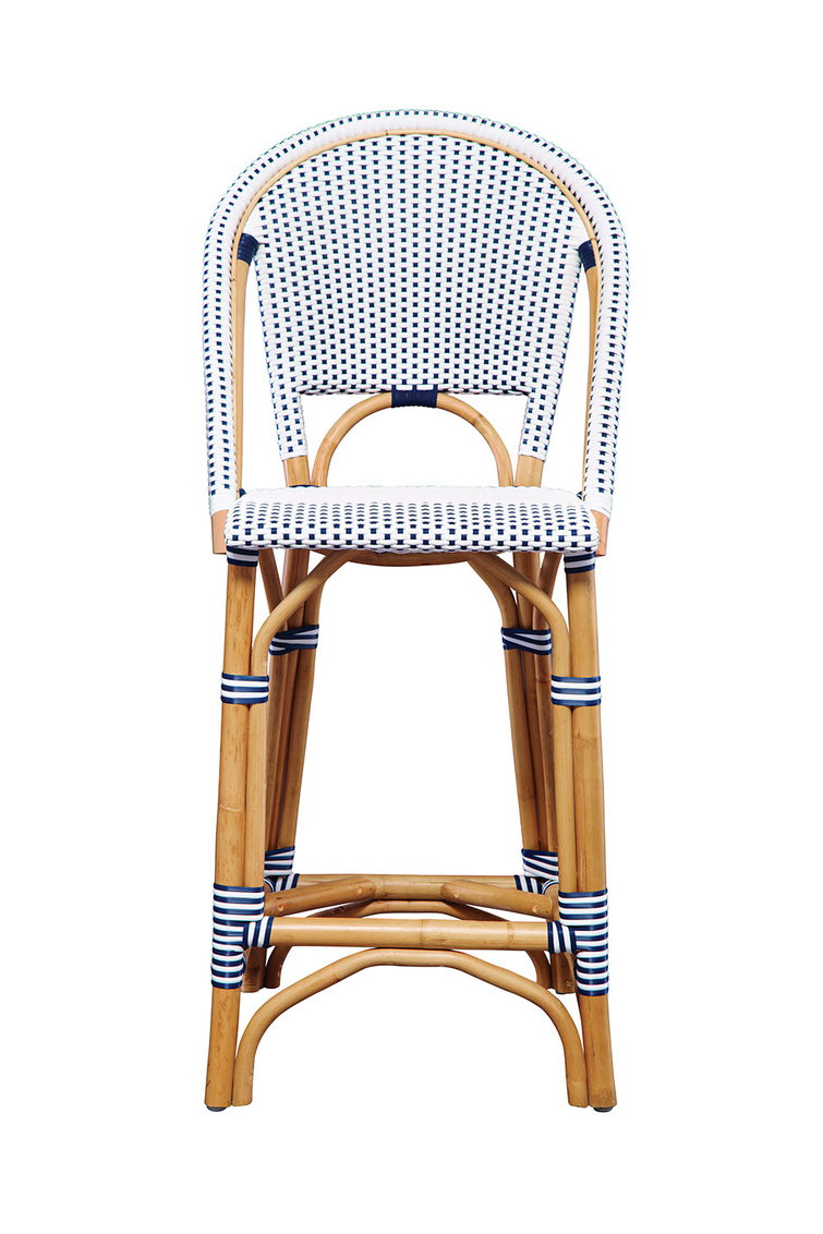 Sturdy enough to hold up to family breakfasts or cocktails with friends, this Paris Bistro inspired stool is eye catching with its tightly woven navy and white resin. Always popular, and even more so today, navy and white is the perfect addition to many of today's trending palettes.
