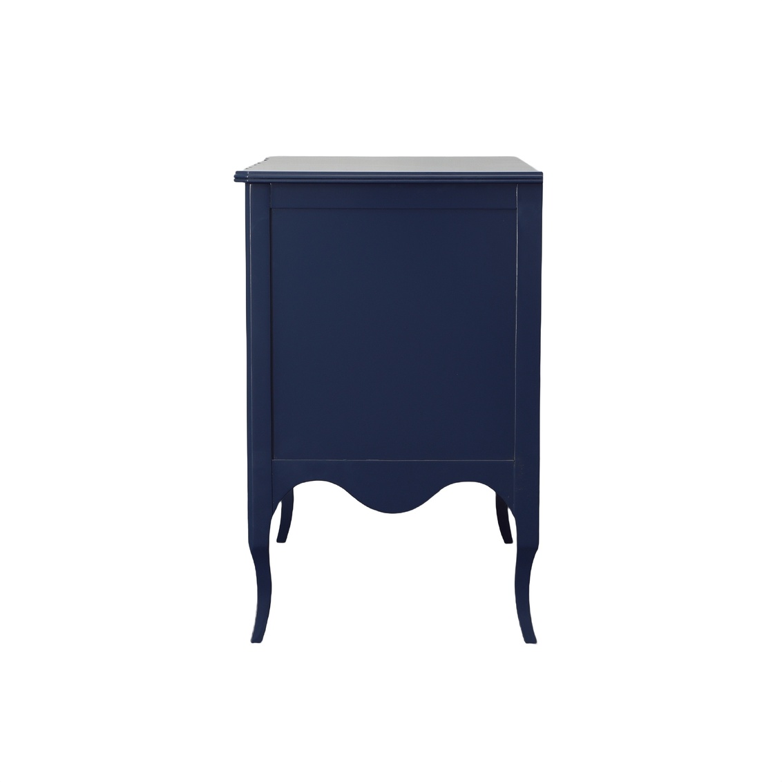 Amazingly, while universally beloved, blue was one of the last colors to receive a name! Whatever you want to call it, this handsome royal navy blue chest is certain to become a favorite in your home! The serpentine front is enhanced by the deeply scalloped apron and curved legs. The solid mahogany chest sports 2 side hung, full extension drawers and a handy pull out writing tray. Lovely just because of the style and storage it offers, even more amazing if you picture it dressed up with your favorite bar ware for a party!