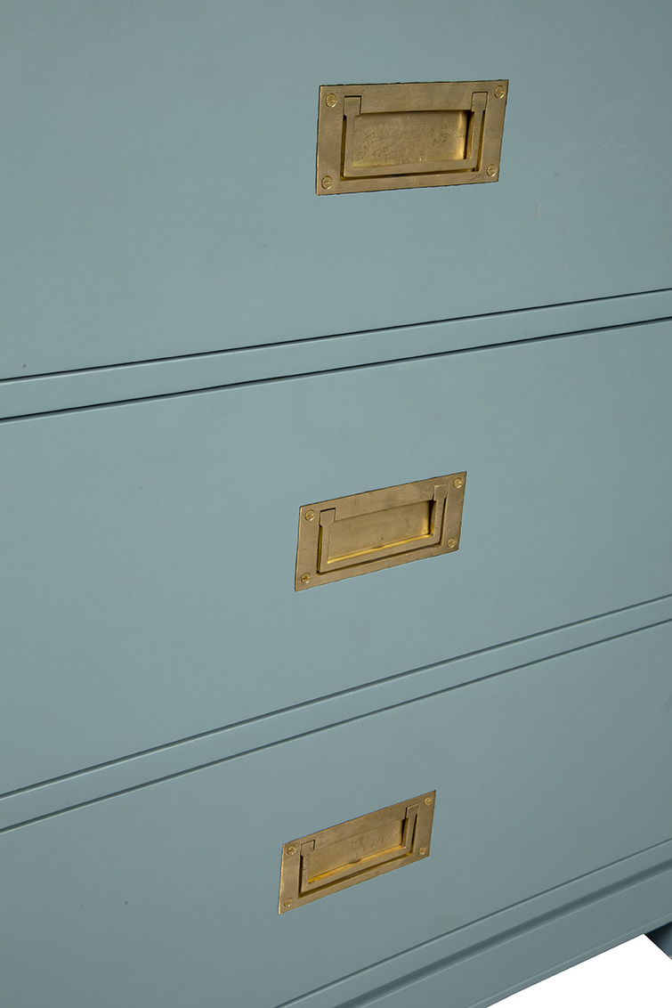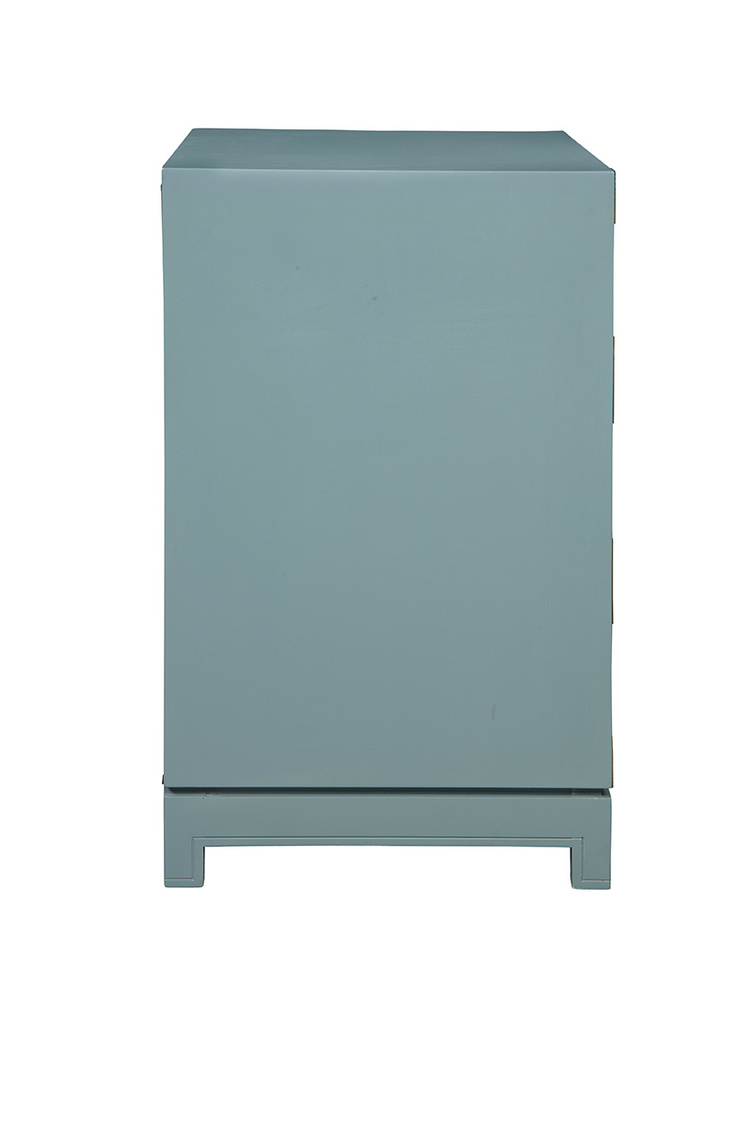 Crafted from solid mahogany, known for its durability and timeless appeal, this chest offers both style and functionality with the addition of soft -close drawers. The smooth, satin fi nish enhances the natural grain of the wood while showcasing a palette inspired by the mesmerizing shades of the sea— from tranquil blues and soothing greens to hints of aquamarine and seafoam.