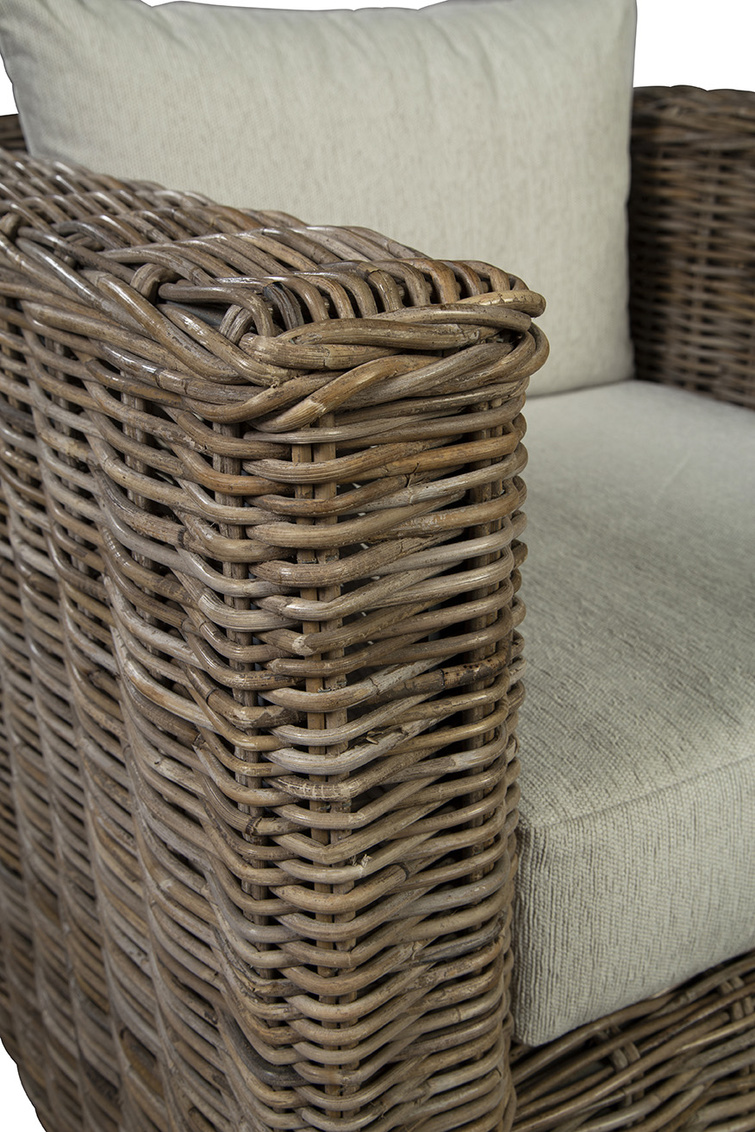 **Final Sale - All Items are sold as is, no returns unless damaged upon receipt. Crafted with care from woven kubu, this swivel chair is more than just furniture; it’s a statement piece that elevates your living space with its unique design and functionality. Designed with your comfort in mind, this chair adds an extra layer of functionality by covering the beautiful neutral cushions in a performance linen fabric.
