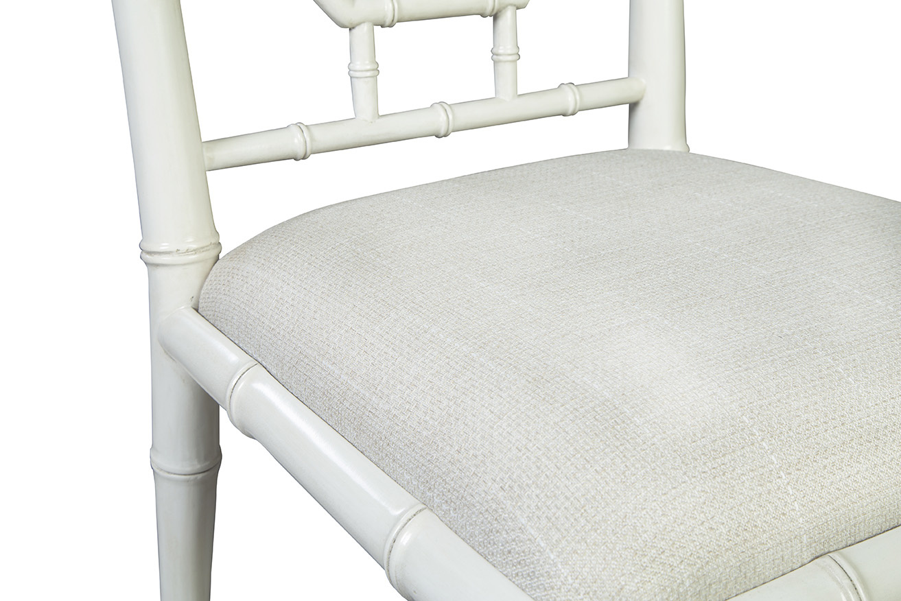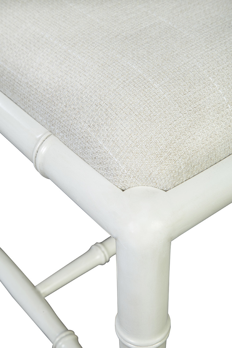 Classic vibes meet cool craftsmanship with our Cream Lahara Side Chair. Made from sustainably grown mahogany and finished in a versatile cream color, this chair is as sturdy as it is stylish. And for comfort? A performance linen blend seat that's built to last! It’s neat geometric design adds an unexpected pop of intrigue to any room, reminiscent of a little twist in your favorite book.