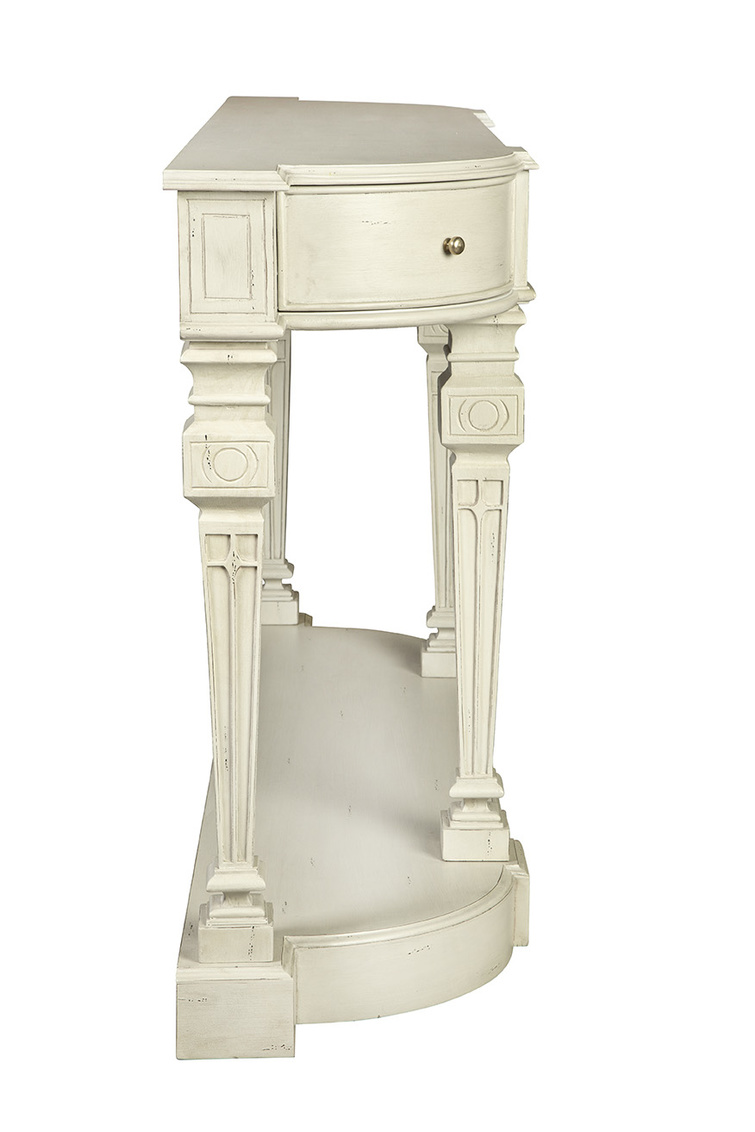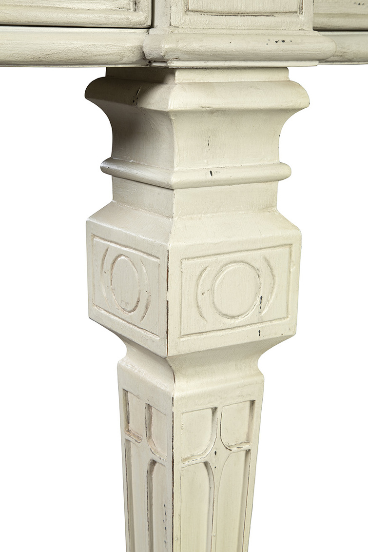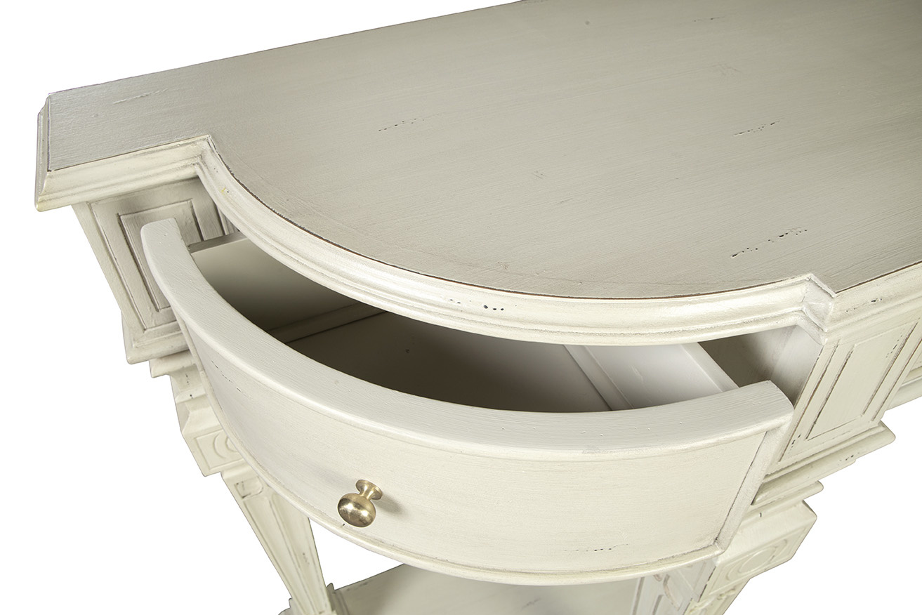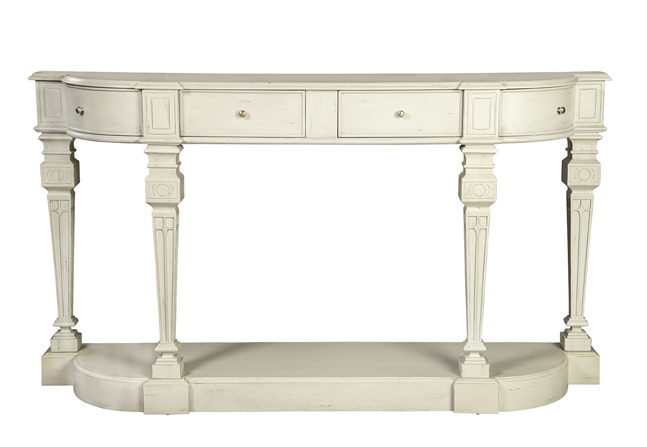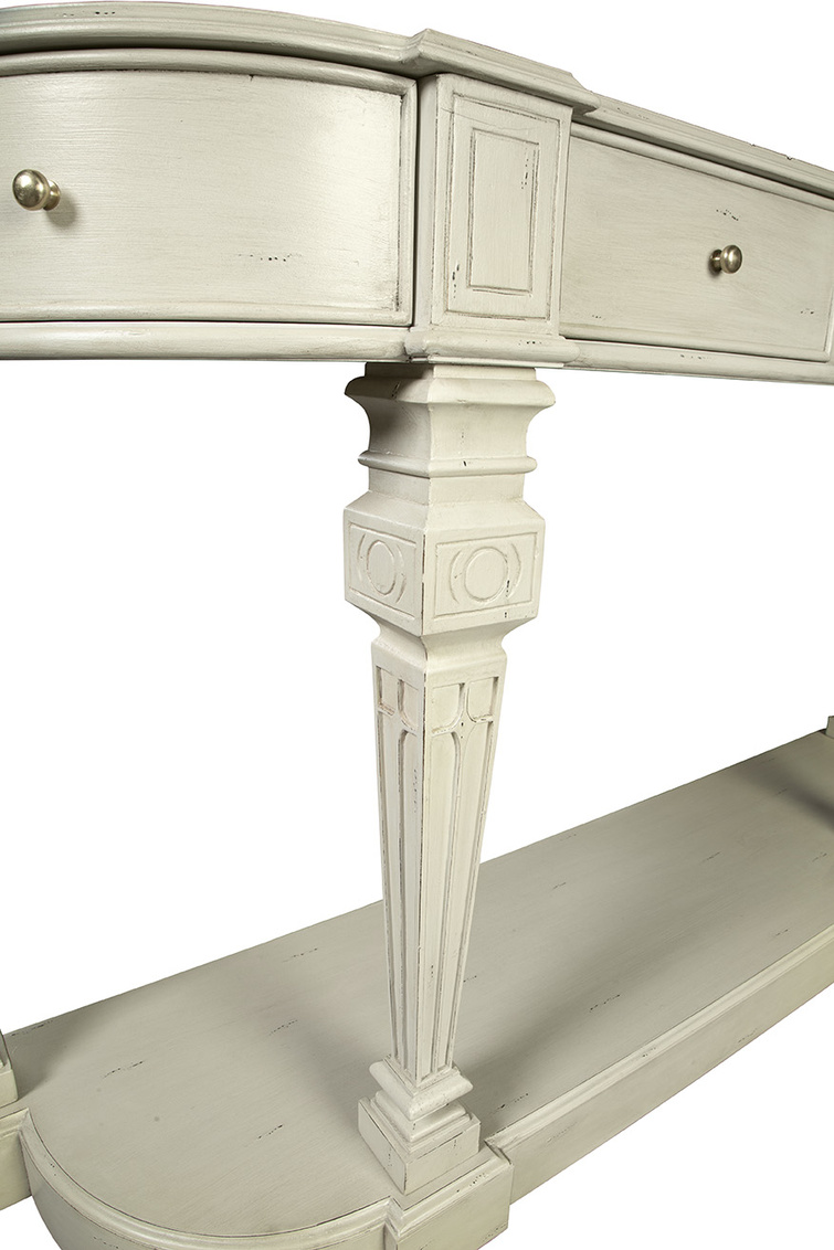 **Final Sale - All Items are sold as is, no returns unless damaged upon receipt. A true stunner! This sustainably sourced mahogany console is large enough for a grand statement. Four working drawers and a substantial lower shelf allow for storage and display of all kinds.