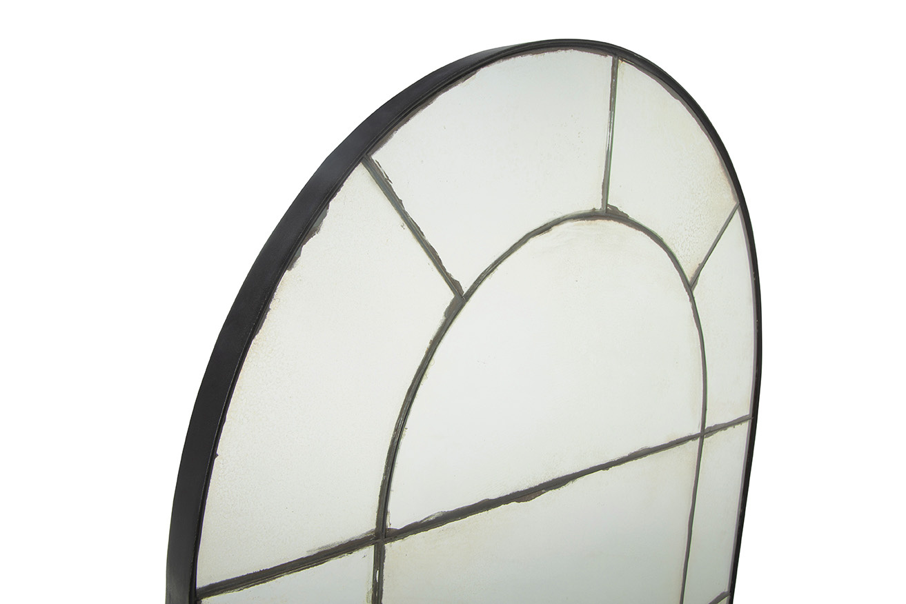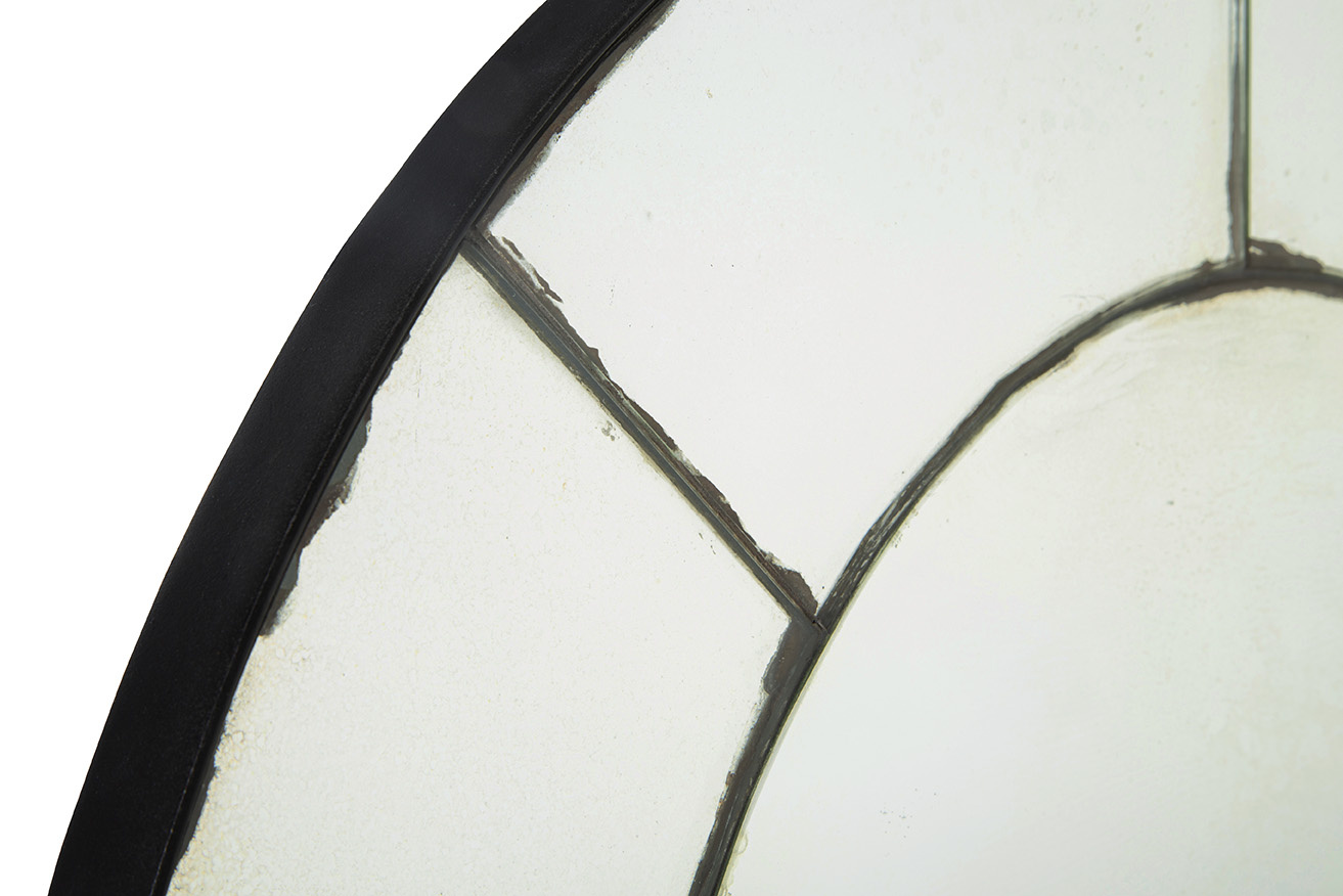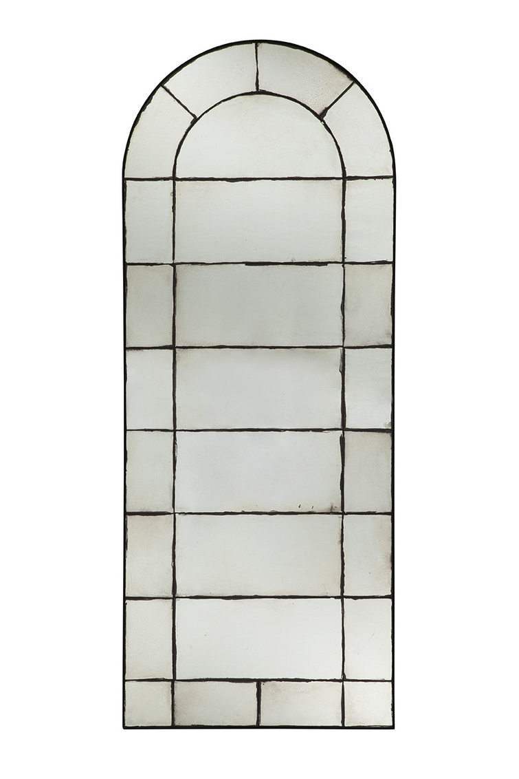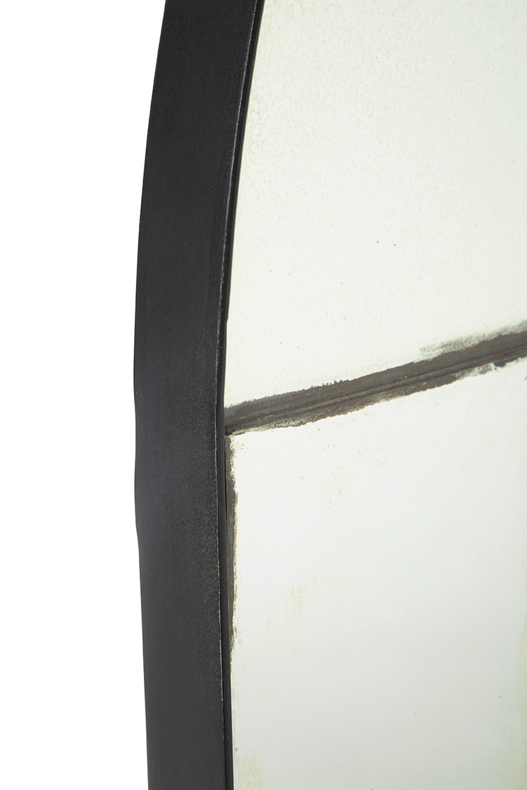The Palladian black and antiqued gold frame of this multi-pane mirror is sure to stun. A beautiful addition by itsef or in pairs. A french cleat mechanism is included for your ease of hanging.
