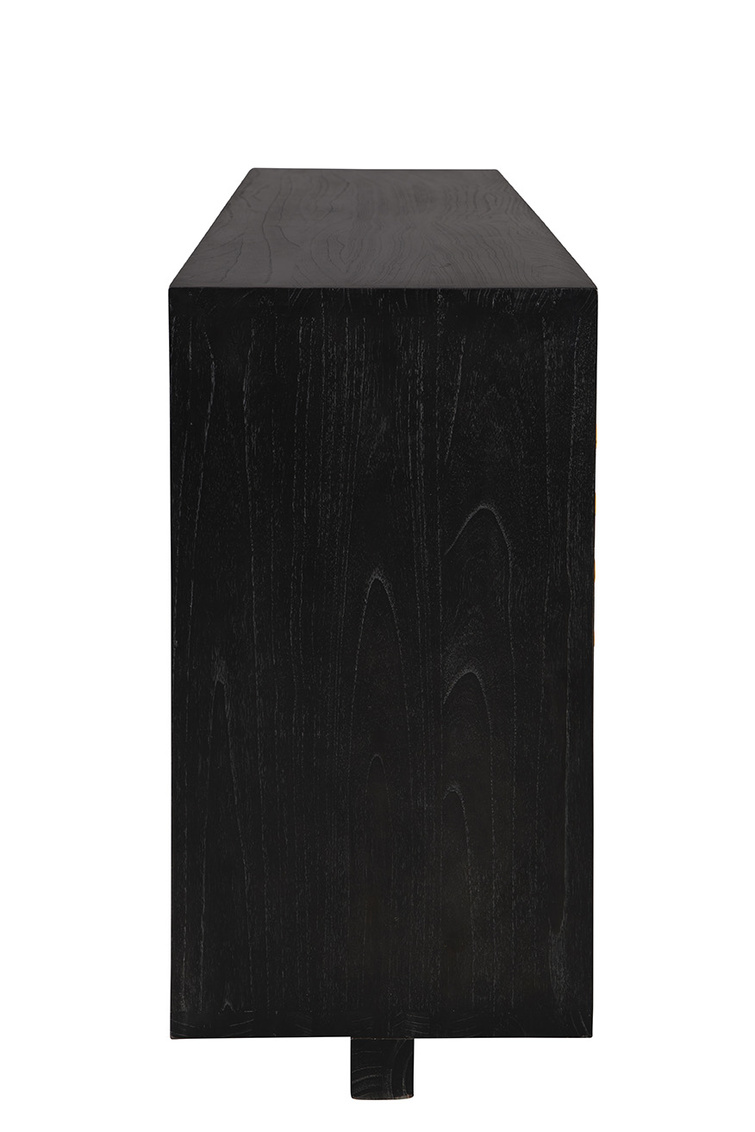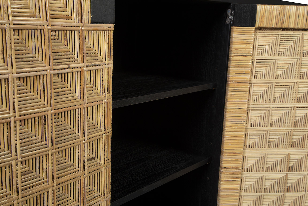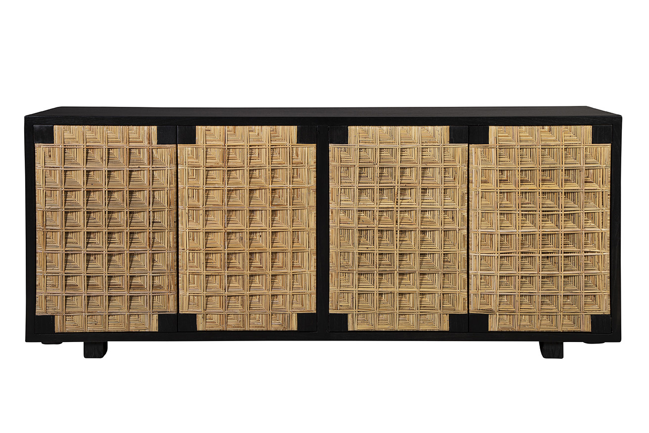 **Final Sale - All Items are sold as is, no returns unless damaged upon receipt. Contrasting natural rattan and sustainably-sourced mahogany elevate your interior décor with this buffet’s natural texture and color, creating a beautiful contrast against the ebony finish. The intricate rattan weave adds texture, warmth, and a touch of tropical elegance, making it a focal point that captivates and delights.