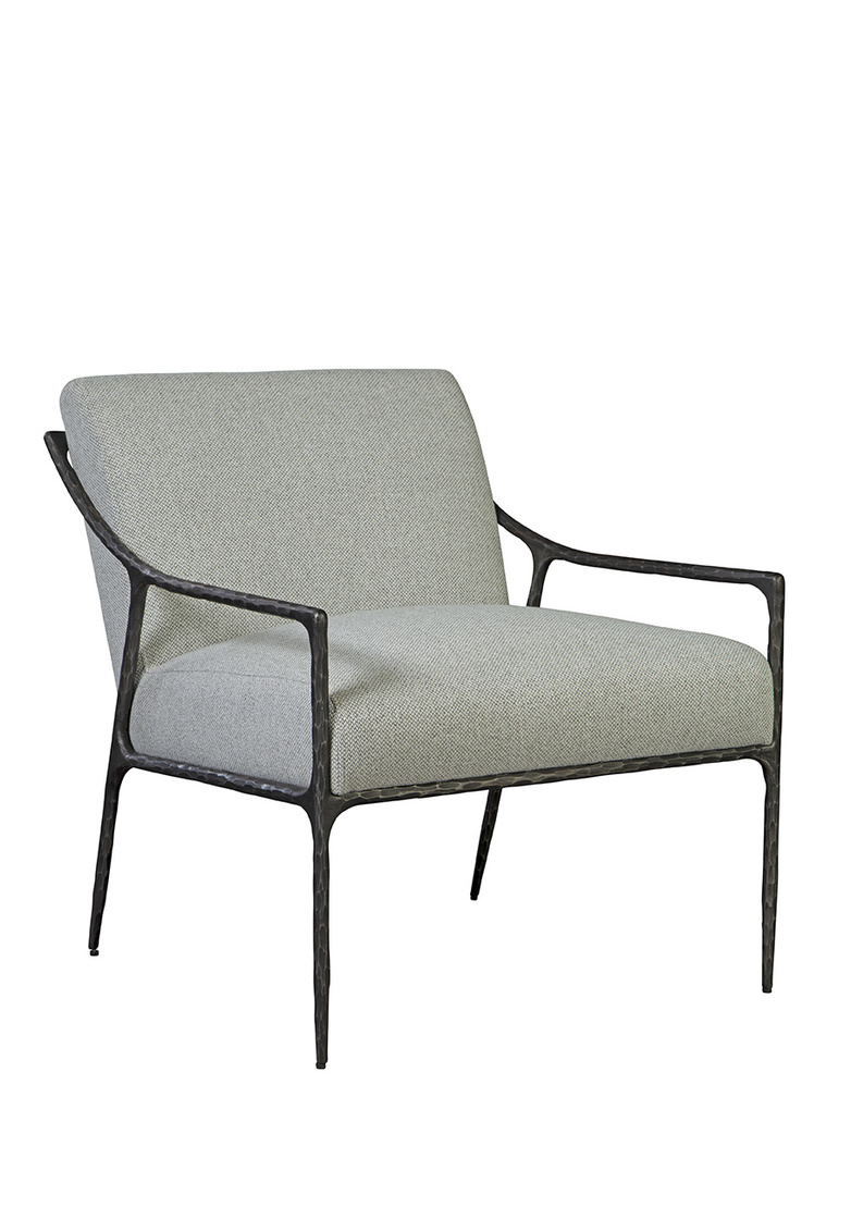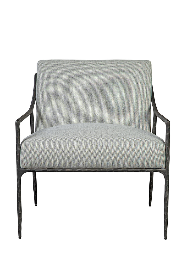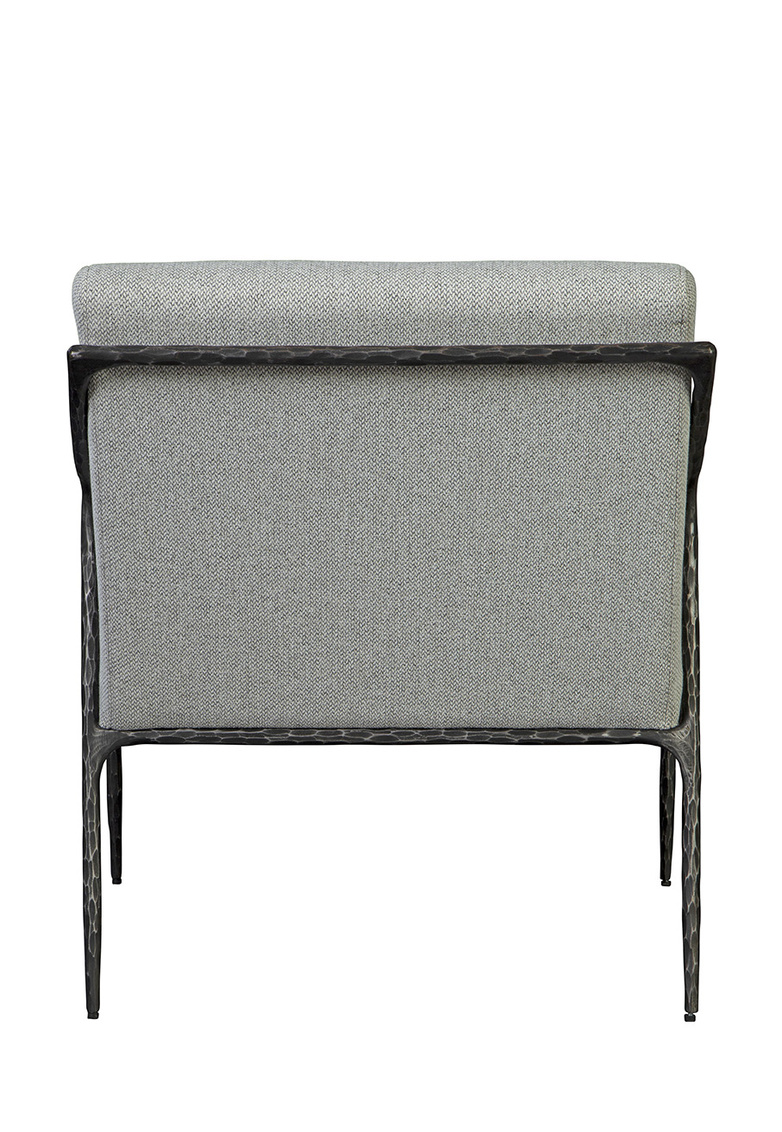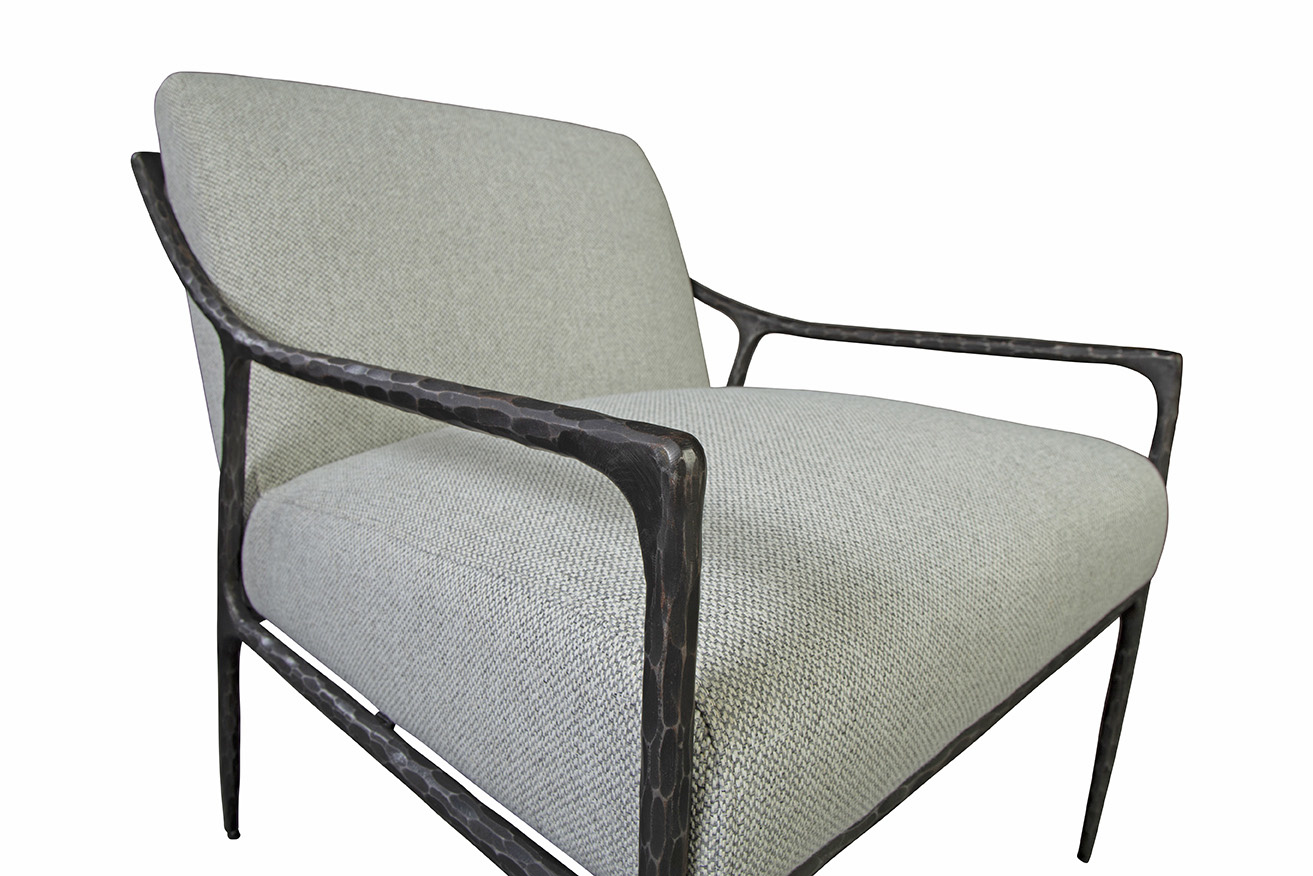 **Final Sale - All Items are sold as is, no returns unless damaged upon receipt. The hand-hammered metal frame is a work of art in itself, showcasing the skill and dedication of our artisans. Upholstered in a high-performance linen fabric, this chair offers a luxurious and comfortable seating experience. The neutral tones of the fabric complement the metal frame, creating a harmonious visual balance.