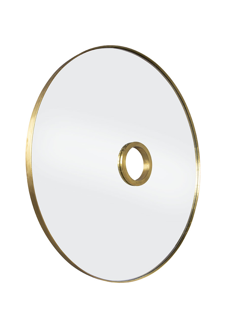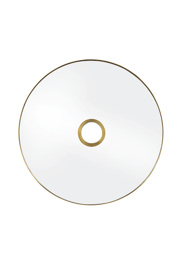 **Final Sale - All Items are sold as is, no returns unless damaged upon receipt. Today’s contemporary take on a traditional porthole mirror. Our gold-finished metal clad mirror is sure to stun in its exaggerated size. A french cleat mechanism is included for your ease of hanging.
