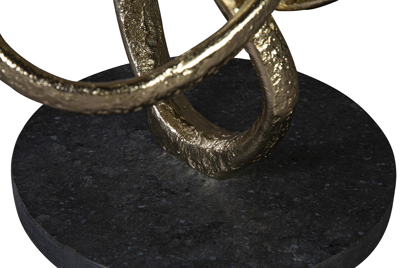 **Final Sale - All Items are sold as is, no returns unless damaged upon receipt. Our O'Conner End Table provides a dazzling display of dark granite and swirled gold cast aluminum. This table is not just furniture; it's a conversation starter with its captivating color contrast and artful design. The top layer of glass adds a touch of refinement—it's the perfect blend of style and substance.