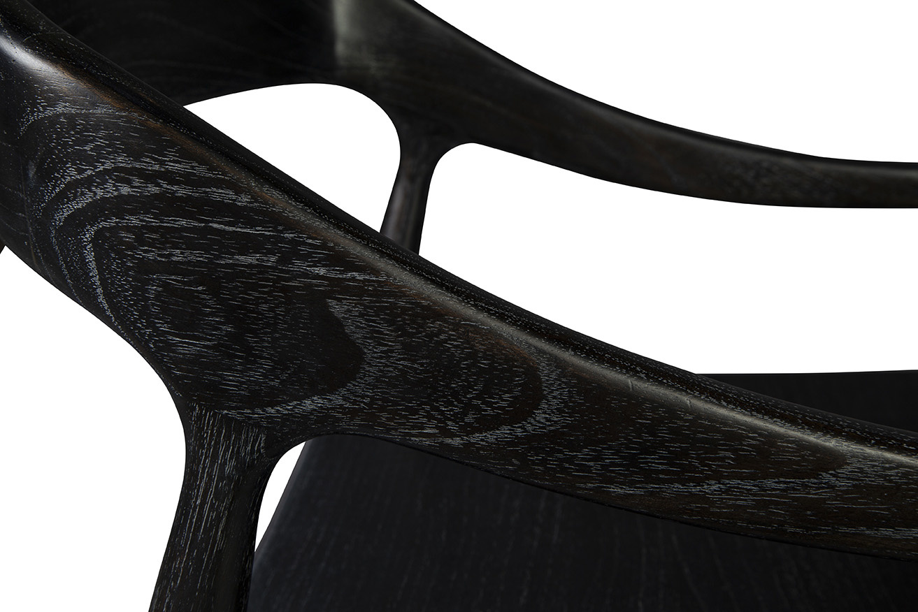 Crafted from the fi nest solid oak, this armchair is a perfect blend of classic sophistication and modern flair. The chair’s silhouette is a nod to traditional craft smanship, featuring subtly curved arms and a gracefully arched backrest for optimal comfort. The slightly modern twist comes in the form of clean lines and a streamlined profile, adding a touch of contemporary style to this classic piece.