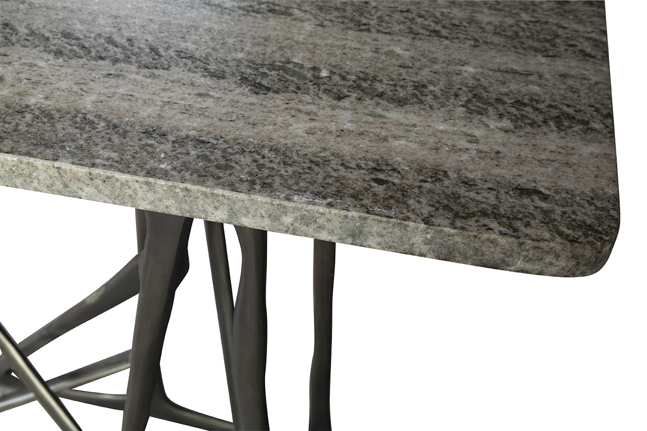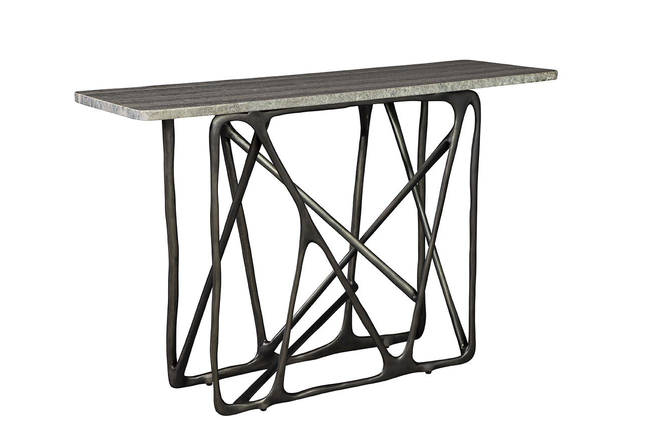 **Final Sale - All Items are sold as is, no returns unless damaged upon receipt. Introducing the Alexander Console, where art and functionality hold hands in a stunning dance of cast aluminum and granite. Its unique base offers artful sculpture-like support that elevates the simplicity of the granite top. This piece is a perfect match for interiors that blend light and dark grey hues, adding depth and sophistication to modern or contemporary spaces.
