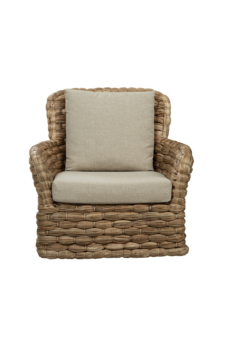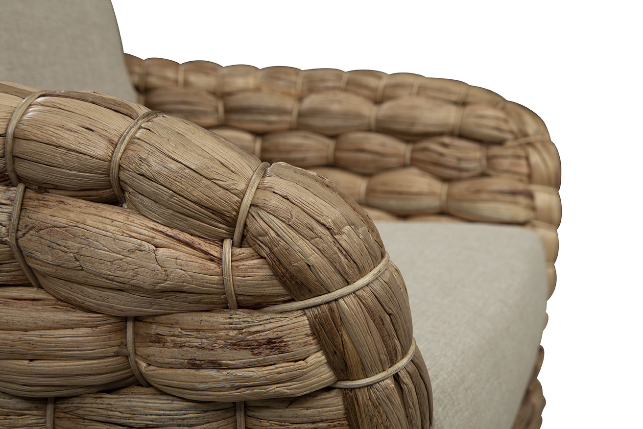 Meet the Bimini Swivel Chair, where sustainable design meets ultimate comfort. This eco-friendly chair is made from durable banana leaf and topped with a plush, high-performance linen blend cushion, perfect for sinking into long, cozy chats. With its smooth swivel action and neutral tones, it fits right into any room, making it an easy favorite wherever you place it.