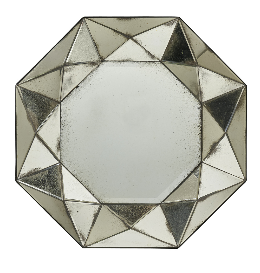 **Final Sale - All Items are sold as is, no returns unless damaged upon receipt. It's not all smoke and mirrors, but in this case, it really is! Geometrically intricate panels of distressed mirror come together to play with light and shadow on this amazing octagonal eye catcher. It is said that accessories are the jewelry of your room. This mirror is the diamond brooch.