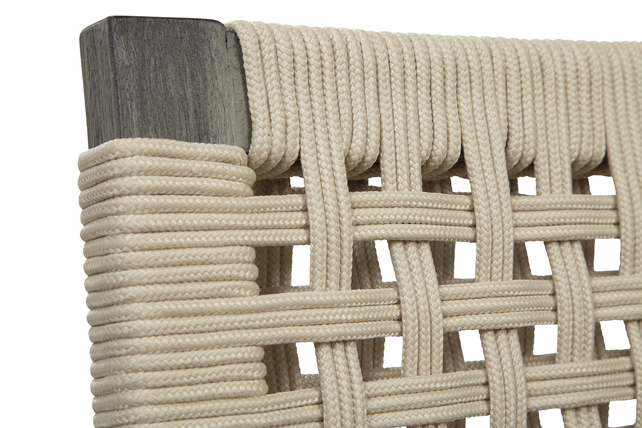 Meet the Savannah Side Chair, like a sibling to the Savannah Arm Chair! Crafted with a grey wooden frame and outfitted with a high-performance linen cushion, this chair provides lasting durability and supreme comfort. The back is adorned with an eye-catching cream-colored woven rope, adding a distinctive flair to its design. Perfect for light, airy interiors, the Savannah Chair complements spaces with its natural, classy vibe.