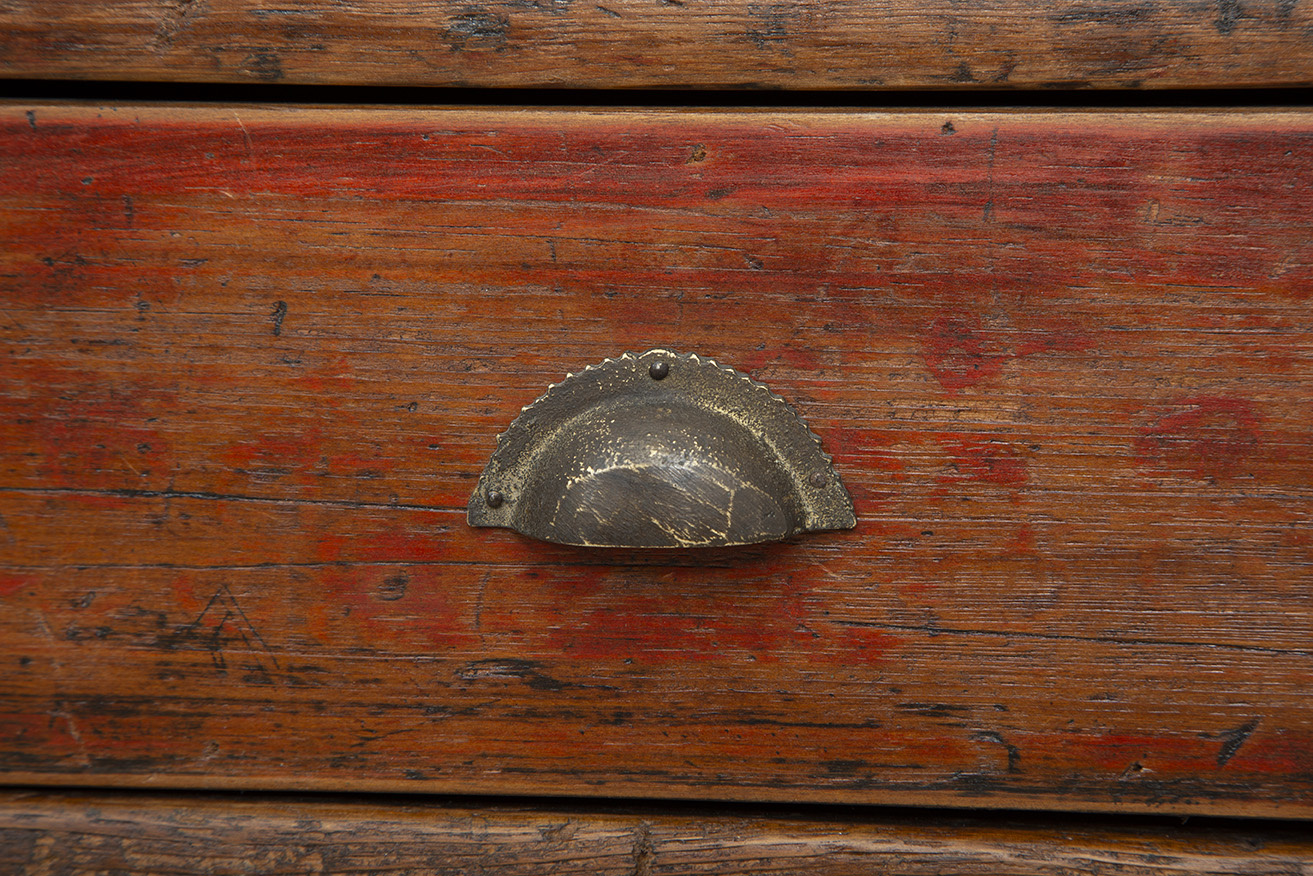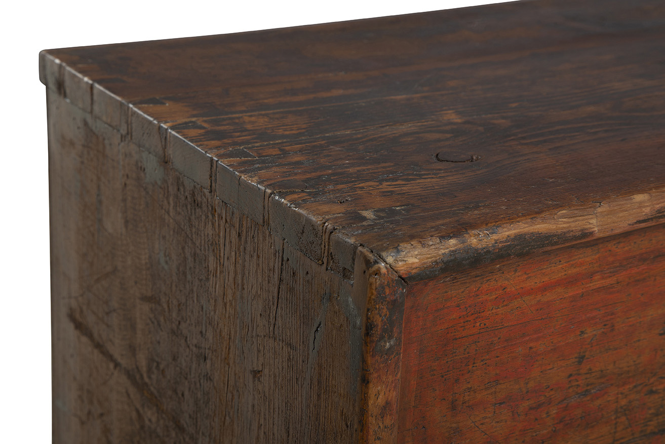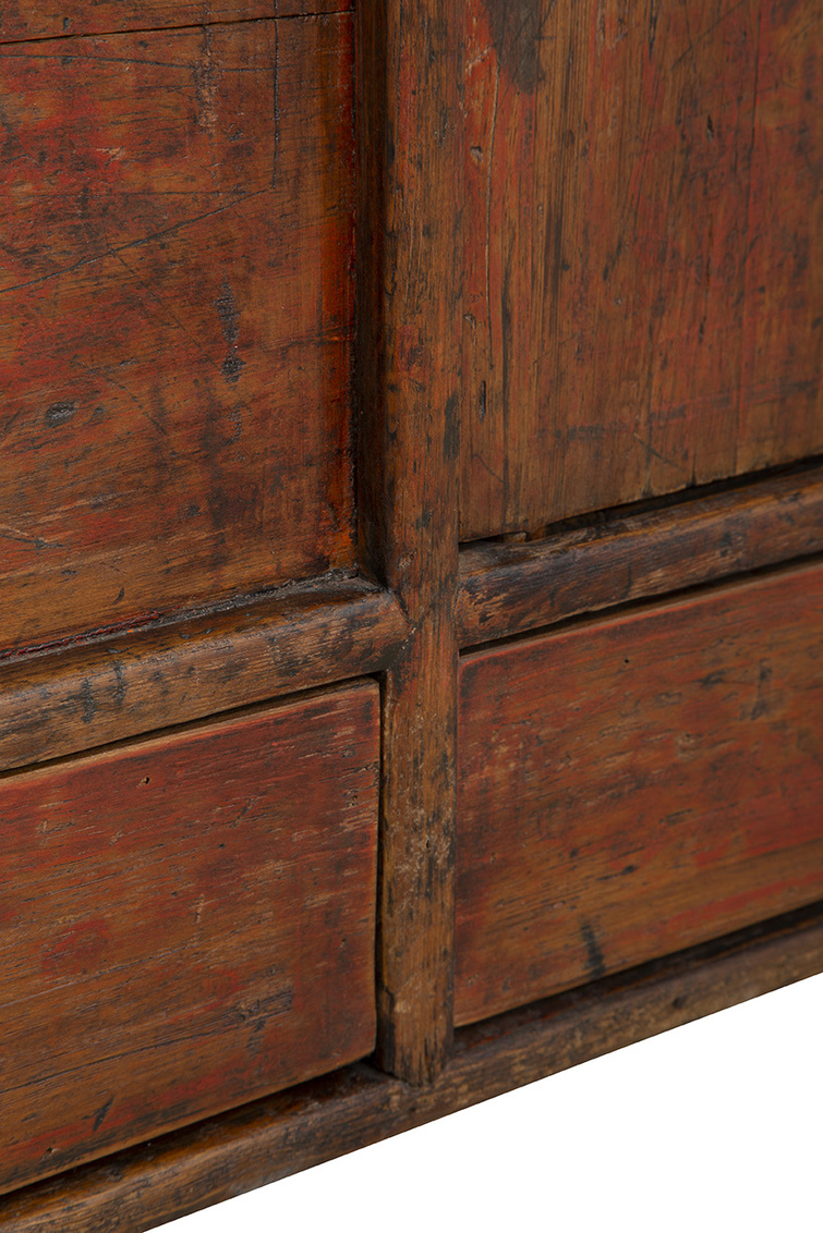 Introducing the Antique Autumn Cabinet, a wide and inviting addition to your space. This rectangular cabinet in a soothing autumn brown hue offers ample horizontal storage through its cabinet doors and four bottom drawers, ideal for organizing your essentials with ease. Embrace the old-world allure and timeless intrigue of this true antique piece, effortlessly blending functionality with vintage charm. The vintage metal hardware not only secures your belongings but also adds a touch of elegance, sealing in the antique charm that defines this exceptional cabinet.