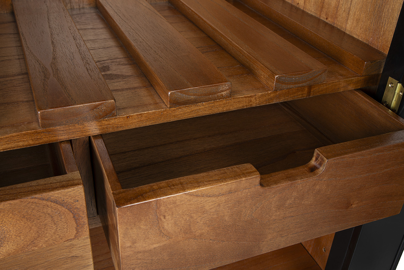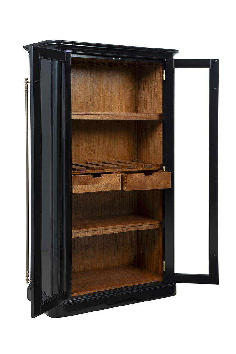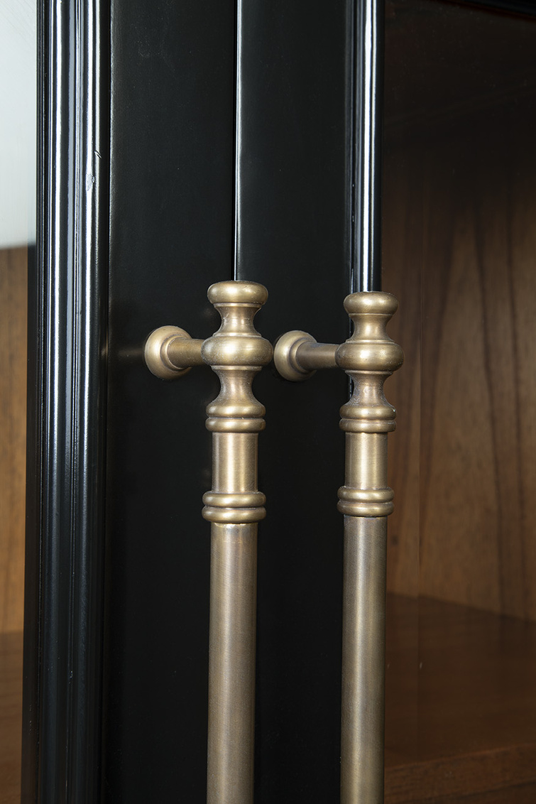 Step into luxury with the Veneto Cabinet, a piece so stunning that mere pictures cannot do it justice. Crafted from solid wood and elegantly finished in a shiny black hue, this cabinet is accentuated by striking gold hardware that adds a touch of opulence. Opening the doors reveals a contrasting natural wood interior that exudes a warm glow, enhancing the cabinet's allure. Perfect for displaying your treasured possessions while keeping them safely stored, the Veneto Cabinet is as functional as it is beautiful.