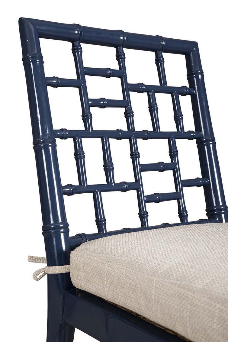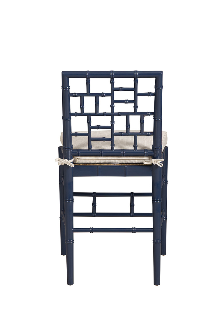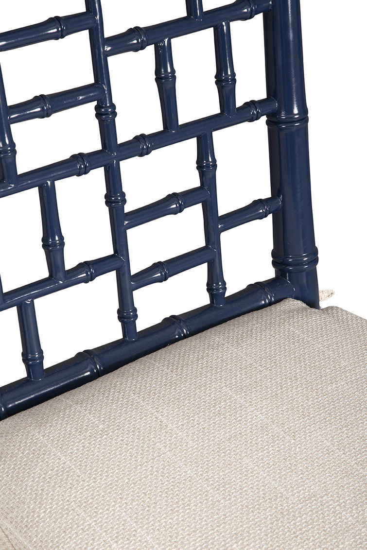 The Blue Hugo Counter Stool combines natural design with a touch of color, perfect for enhancing any interior. Made from solid wood and crafted to emulate the look of bamboo, this stool boasts a deep blue finish that adds a subtle yet sophisticated accent to your space. The cane seating is topped with a removable linen cushion, providing both comfort and easy maintenance, making it ideal for a kitchen bar. With its blend of natural aesthetics, cool geometric shaping on the back, and practical features, the Blue Hugo Counter Stool is a versatile and stylish addition to your home.
