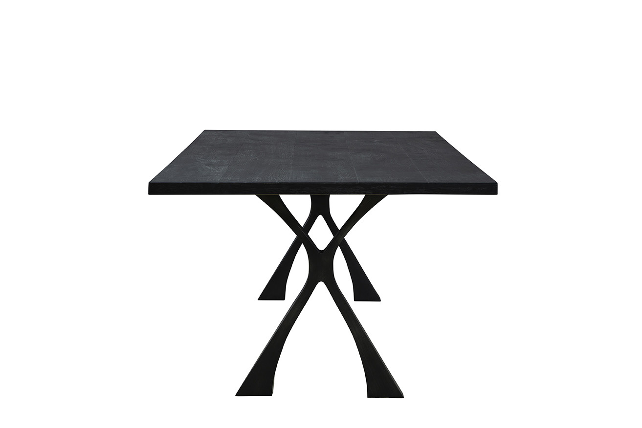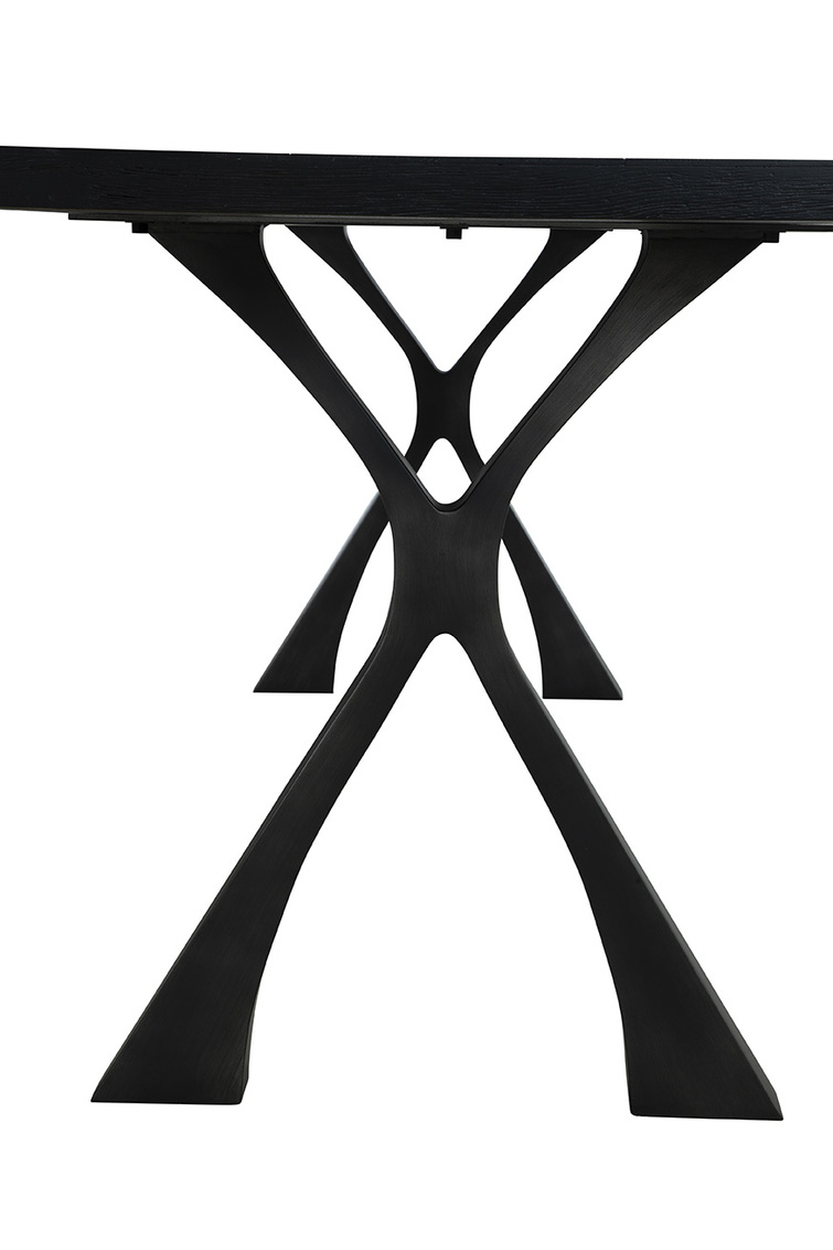 The Black Wishbone Dining Table is a striking piece crafted from solid wood and boasting a smooth, sleek black finish, perfect for minimalist and modern home decor styles. Its standout feature is the unique curved wishbone legs, which not only lend the table its name but also add a touch of elegance and sophistication to its design. Ideal for dining areas seeking a contemporary aesthetic, this table combines style and functionality with its eye-catching design and quality construction