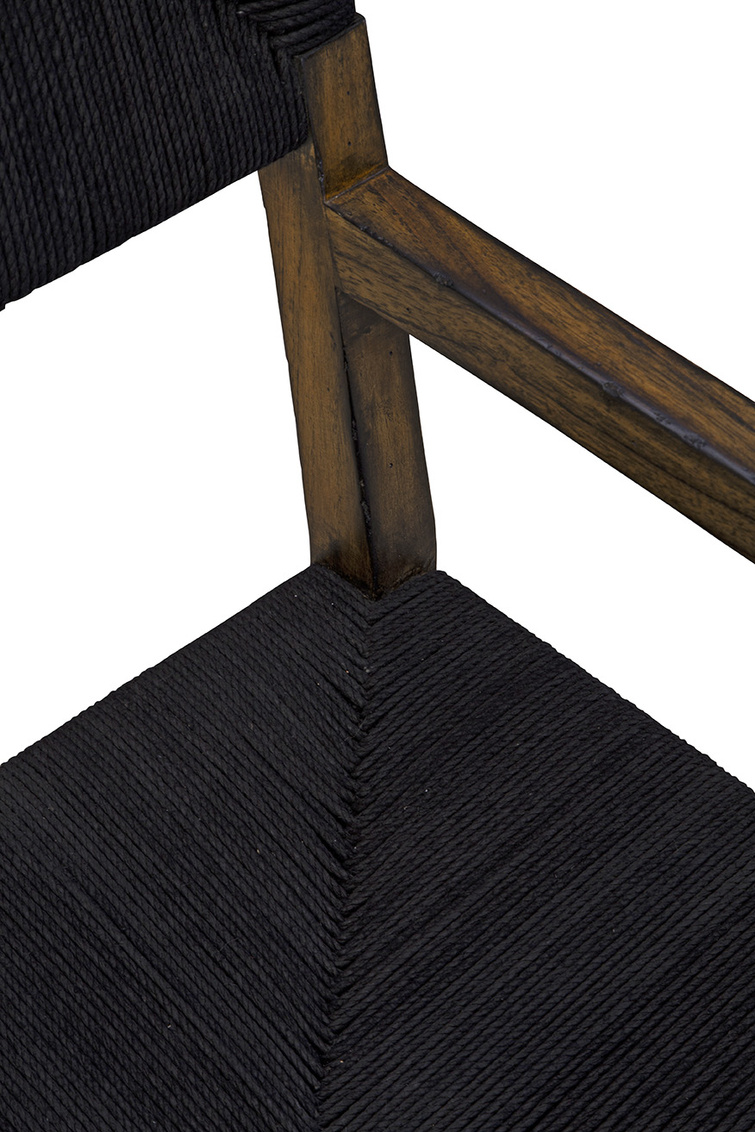 **Final Sale - All Items are sold as is, no returns unless damaged upon receipt. The Edenton Arm Chair blends timeless style with modern sophistication. Crafted with a durable black woven rope seat and back, it rests on an elegant teak wood frame with a beautifully finished grain. This chair’s design is both classic and contemporary, making it a versatile and striking addition to any space.