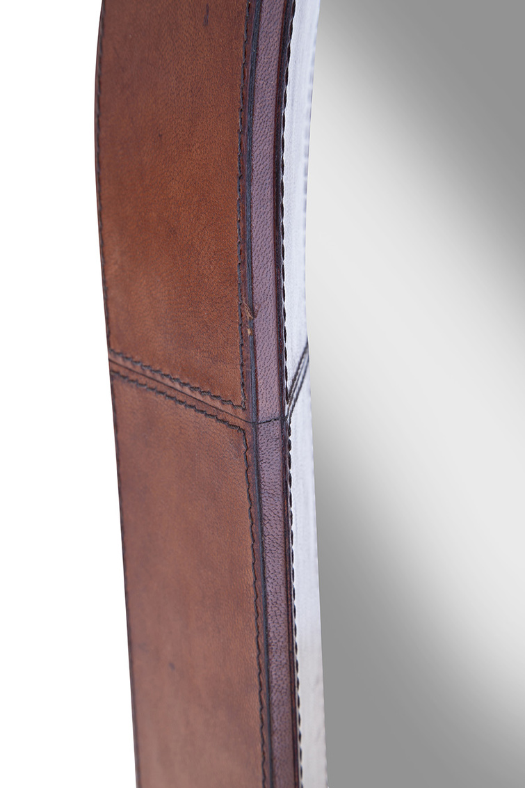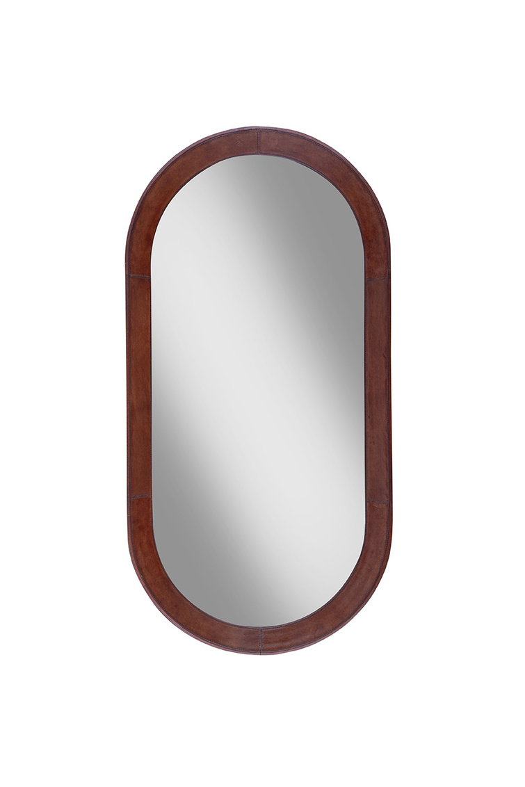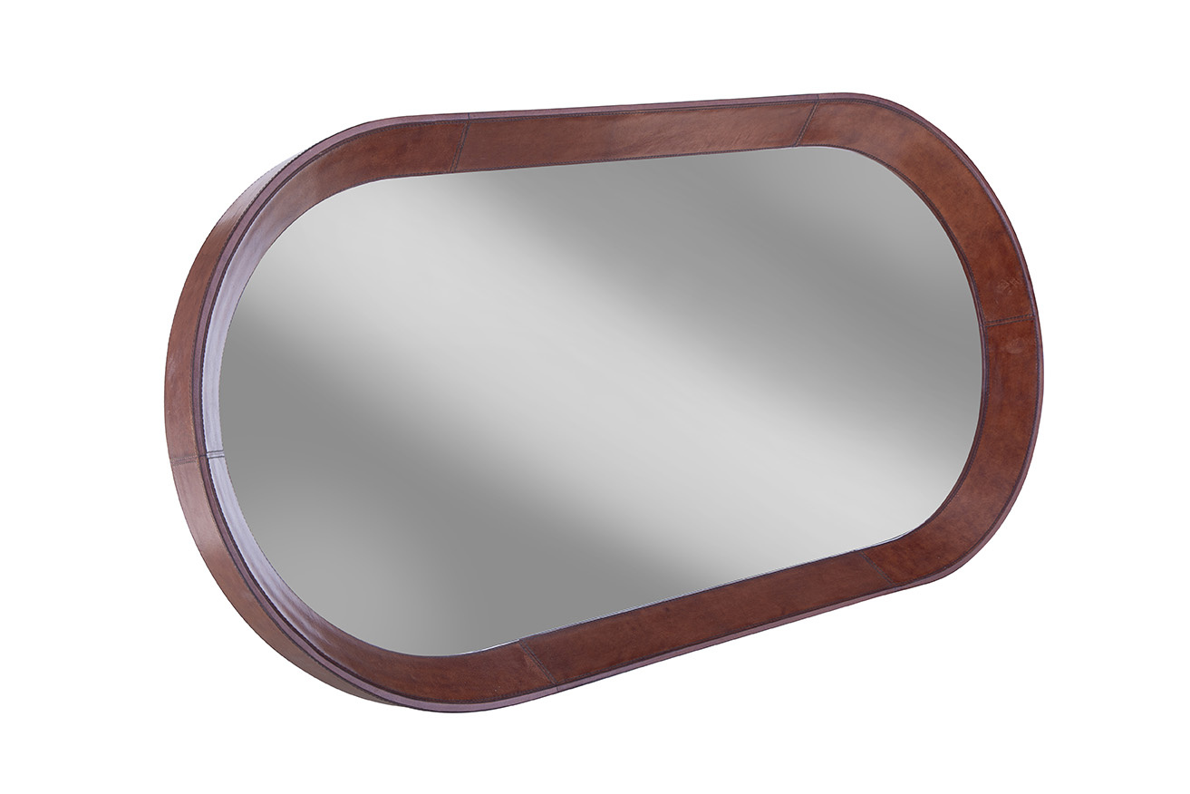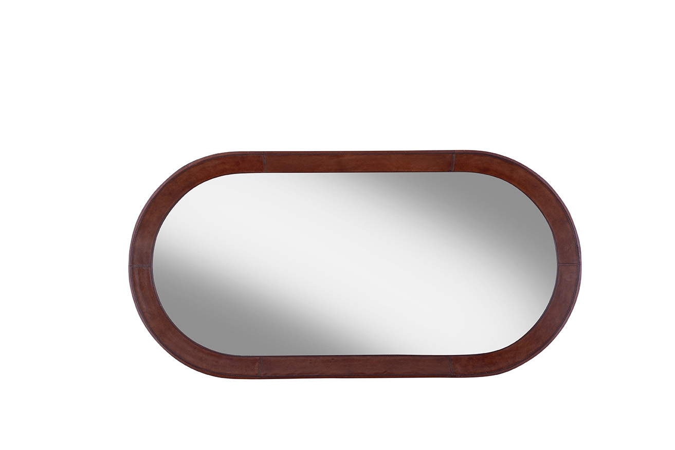 The Homer Oval Mirror combines versatility and style with its long oval shape and rich leather frame. Whether hung vertically or horizontally, it complements dark brown and leather furniture, making it a perfect fit for rustic, Western, modern, or polo club-inspired interiors. A true statement piece, the Homer Oval Mirror effortlessly enhances any space with its timeless appeal.
