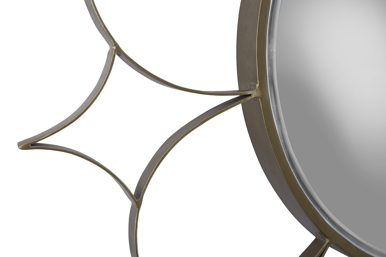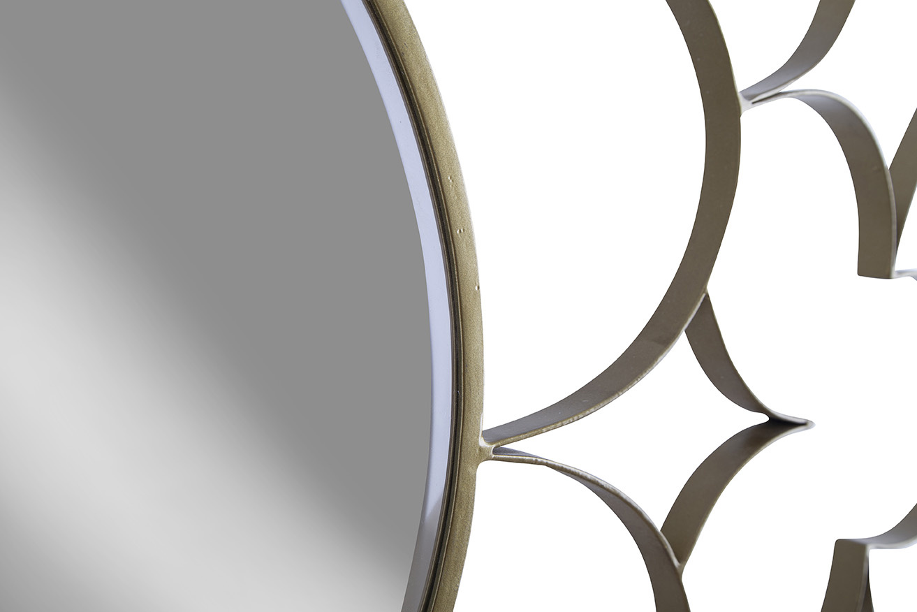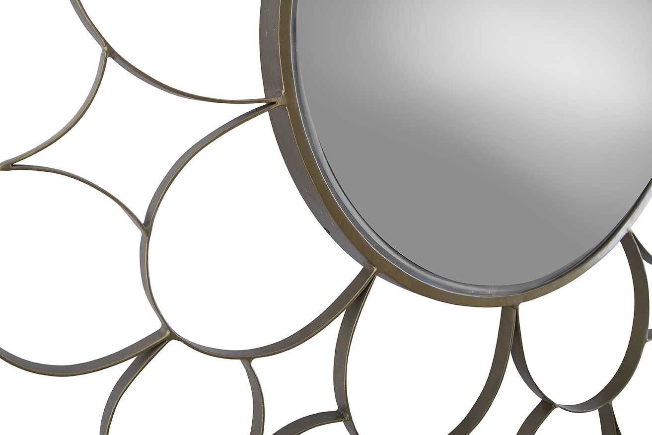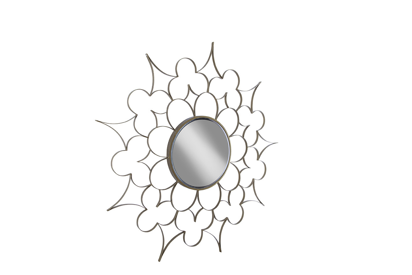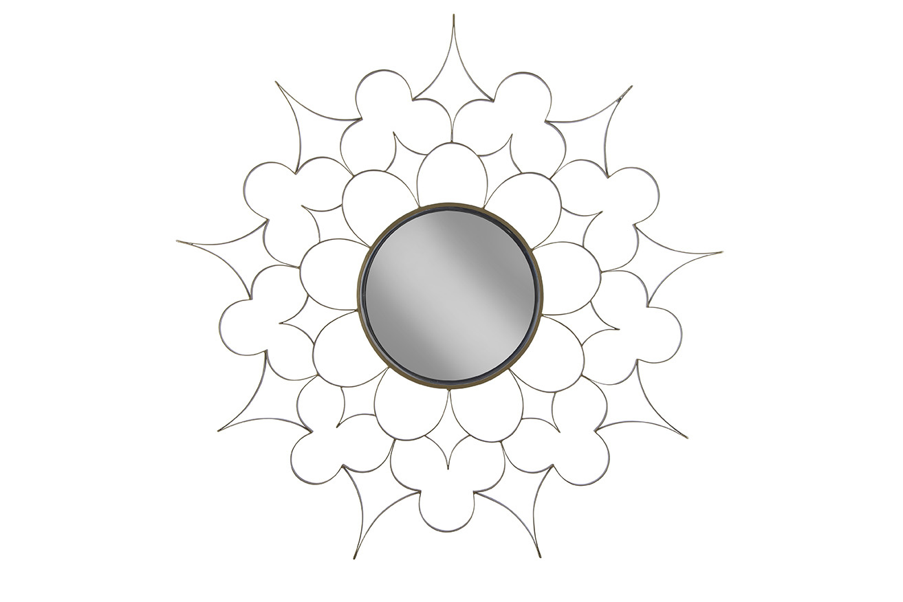 The Selena Mirror is a bold, sculptural statement piece that adds artistry to any room. Its gold metal frame is intricately designed to resemble the outline of a flower, beautifully framing the circular mirror at its center. This eye-catching mirror brings a touch of elegance and creativity, making it the perfect addition to elevate your home décor.