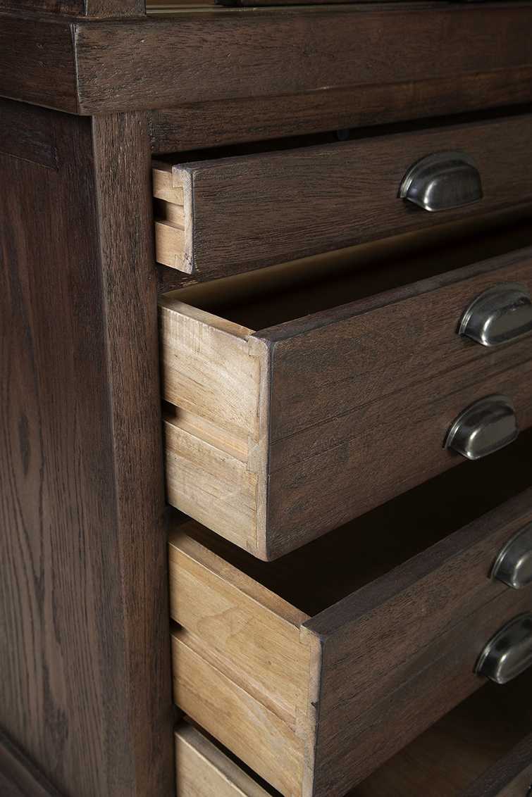 **Final Sale - All Items are sold as is, no returns unless damaged upon receipt. Moderately sized and full of charm, the Brown Single Balmoral Cabinet offers both hidden storage and display options. Crafted from solid wood in a classic dark brown finish, it features multiple drawers at the base for keeping items tucked away, while the glass-paneled top provides the perfect showcase for your favorite pieces. With its timeless design and versatile functionality, this cabinet is a stylish addition to dining rooms, living rooms, or any space in need of a refined display solution.
