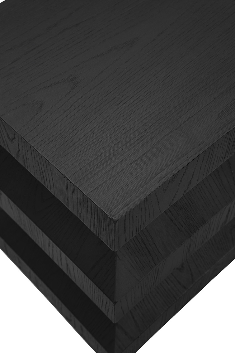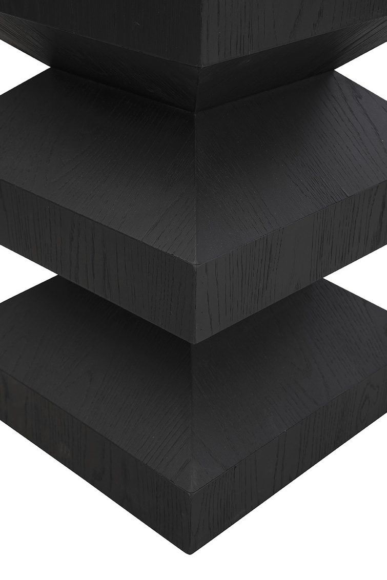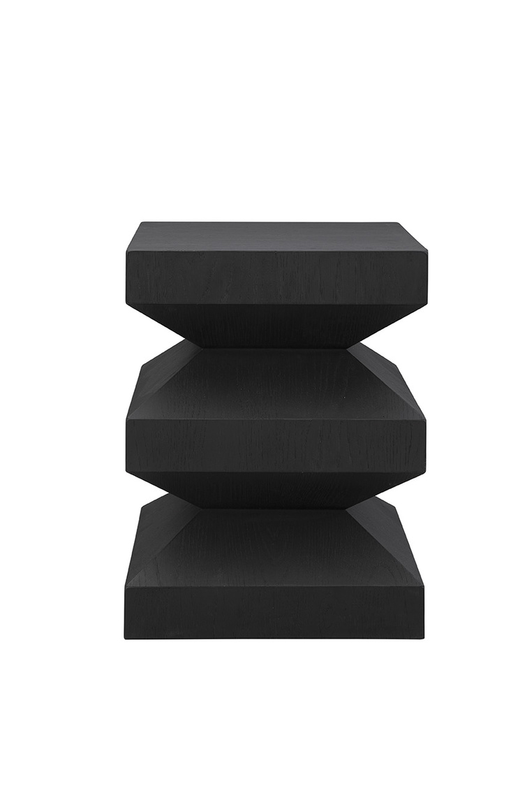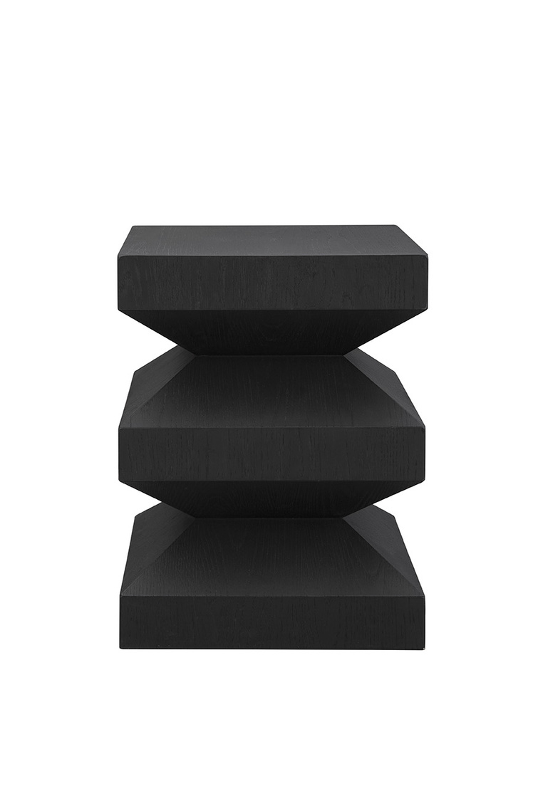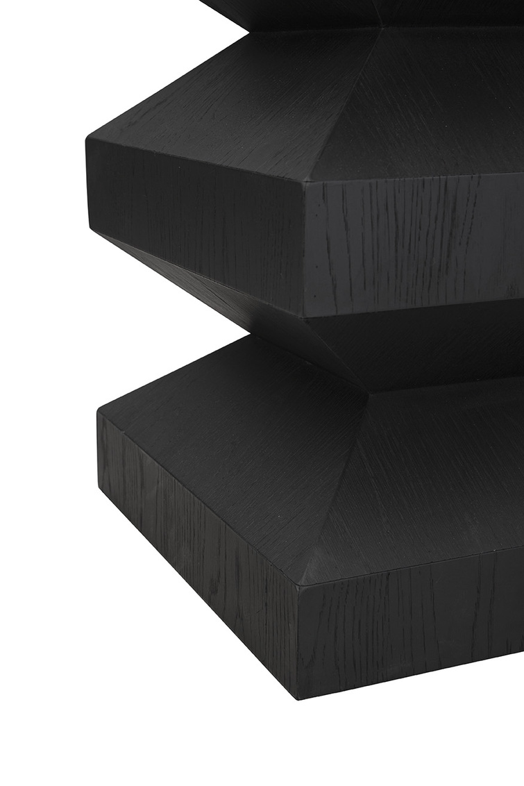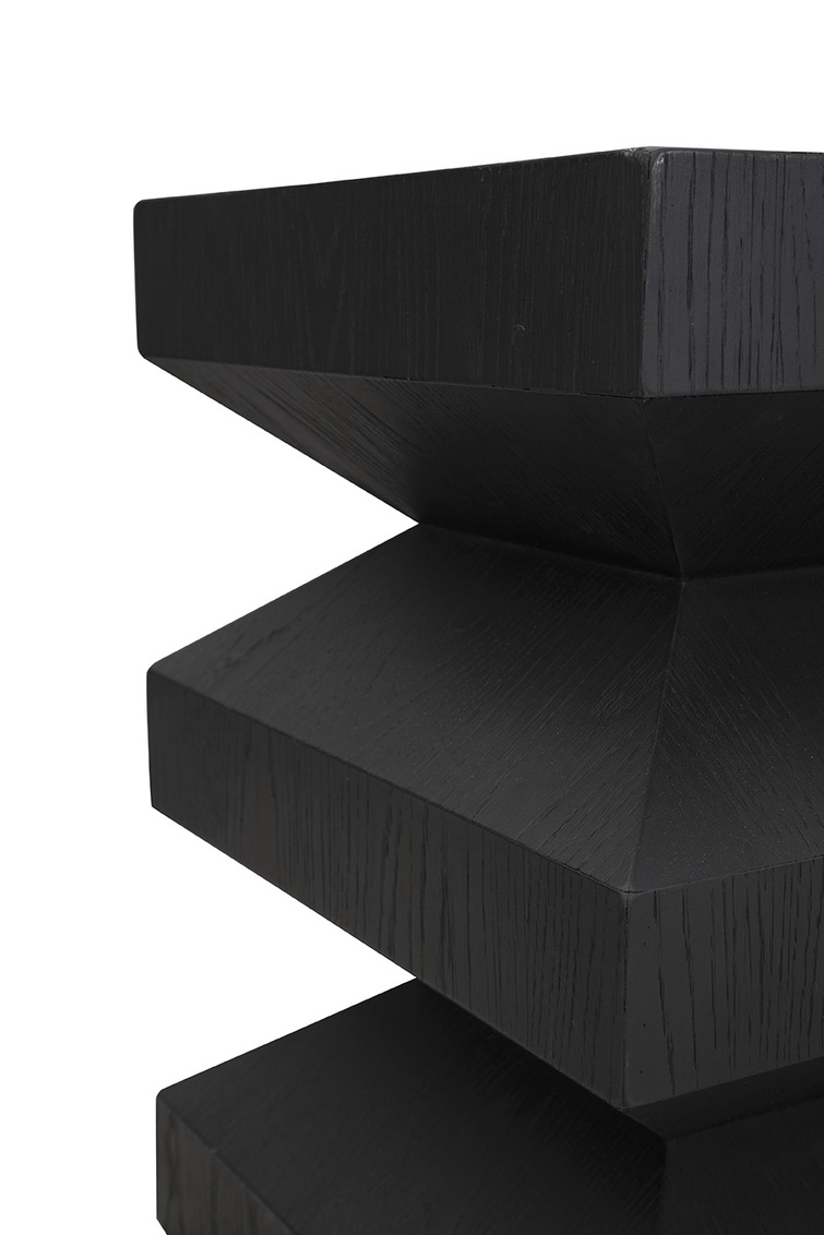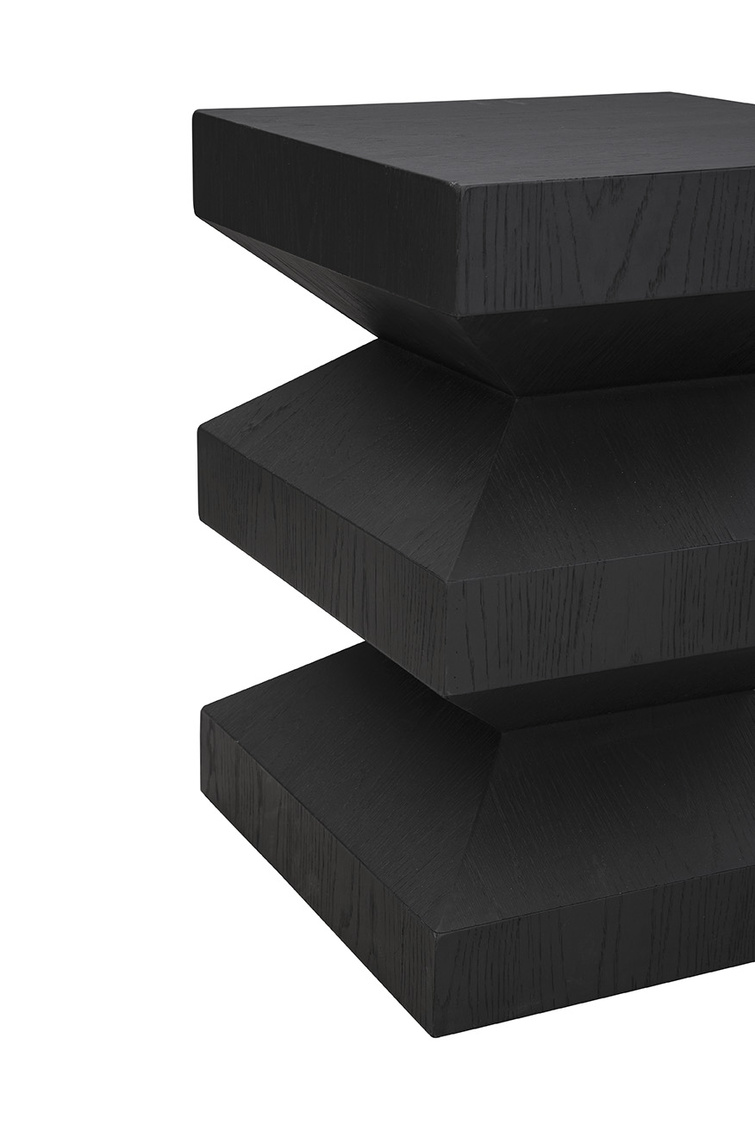 **Final Sale - All Items are sold as is, no returns unless damaged upon receipt. The Plato's End Table is a modern masterpiece with a sculptural silhouette that adds architectural appeal to any space. Crafted from oak with a sleek matte black finish, its angular form creates a striking contemporary edge. Perfectly versatile, Plato's End Table works beautifully next to a sofa, between two accent chairs, or as a stylish bedside table, bringing both form and function to your home.
