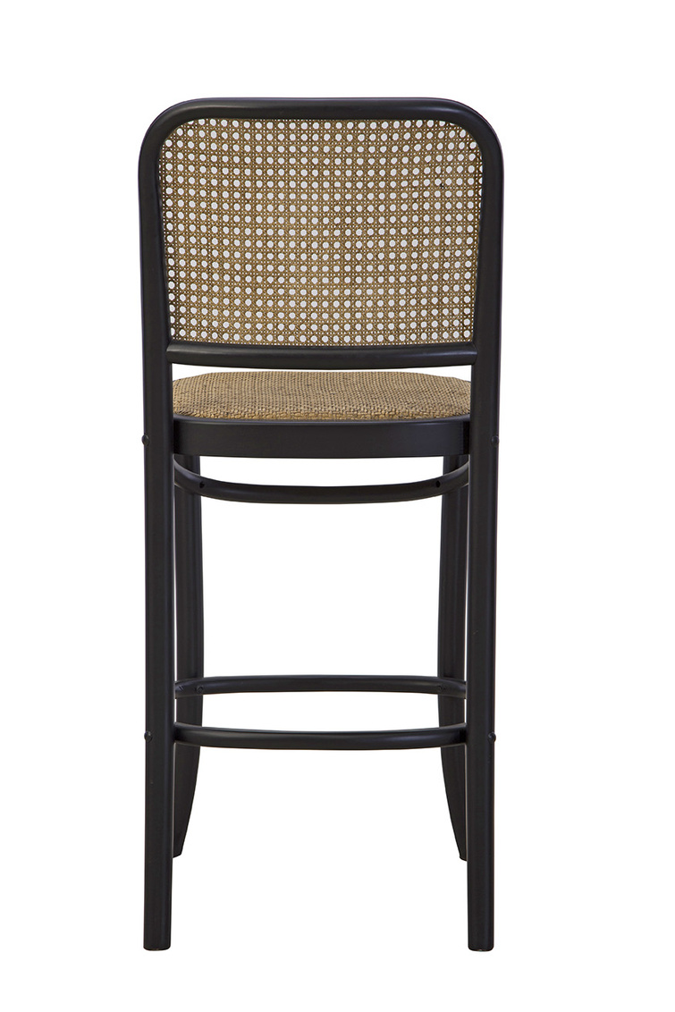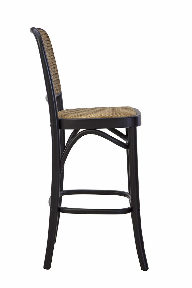 Crafted from beech wood in a sleek black finish, the Black Cleveland Counter Stool features straight back legs and subtly curved front legs for a balanced silhouette. Rounded support pieces at the base add both stability and style, while the light cane seat and back provide a striking contrast to the dark frame. Perfect for kitchens or bar areas, the Black Cleveland Counter Stool offers both modern sophistication and natural texture.