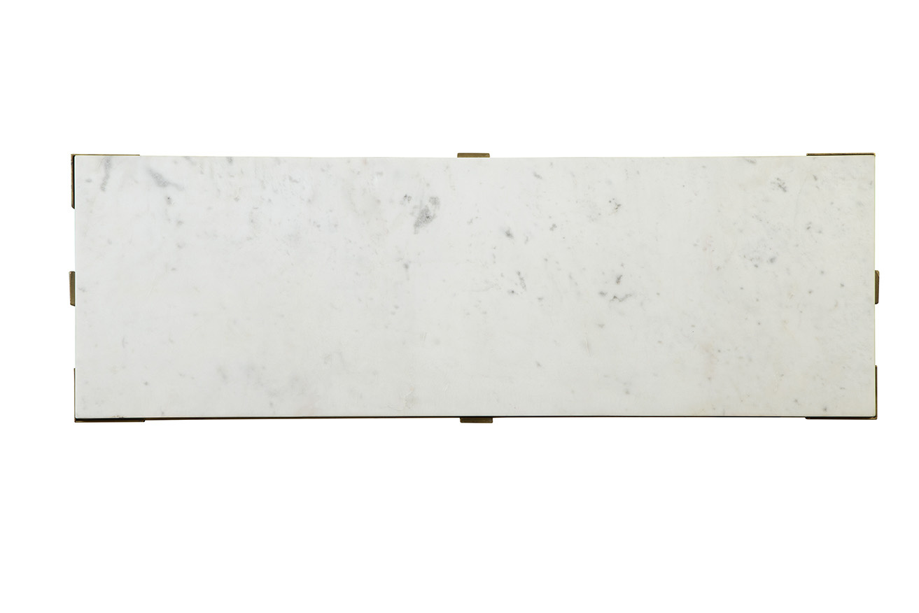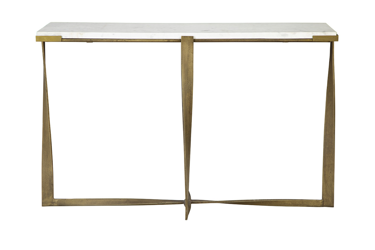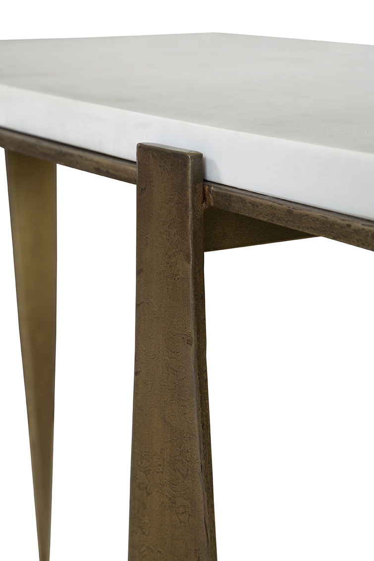The Josie Console combines modern elegance with a touch of mid-century inspiration. Featuring a sleek white marble rectangular top, it exudes a luxurious feel perfect for an entryway or living space. The powder-coated antique brass-finished legs offer a rustic sensibility that beautifully contrasts with the cool, clean lines of the marble, creating a chic and minimal aesthetic to elevate any room.