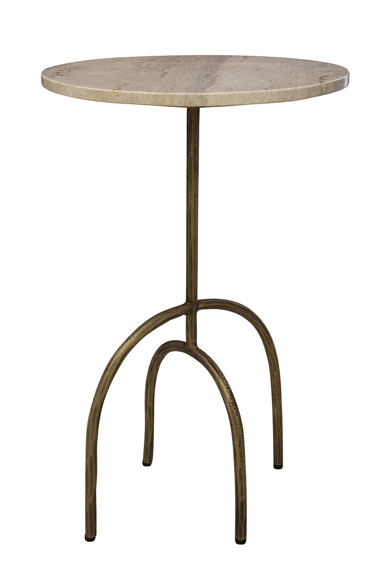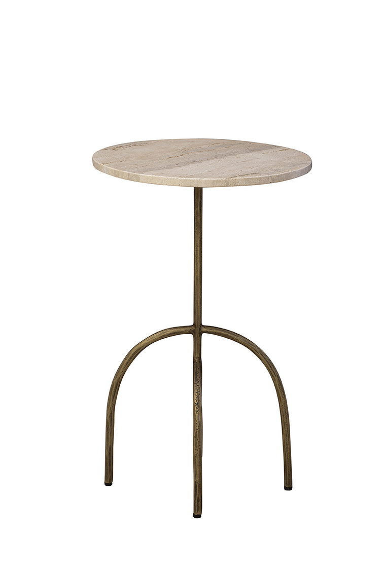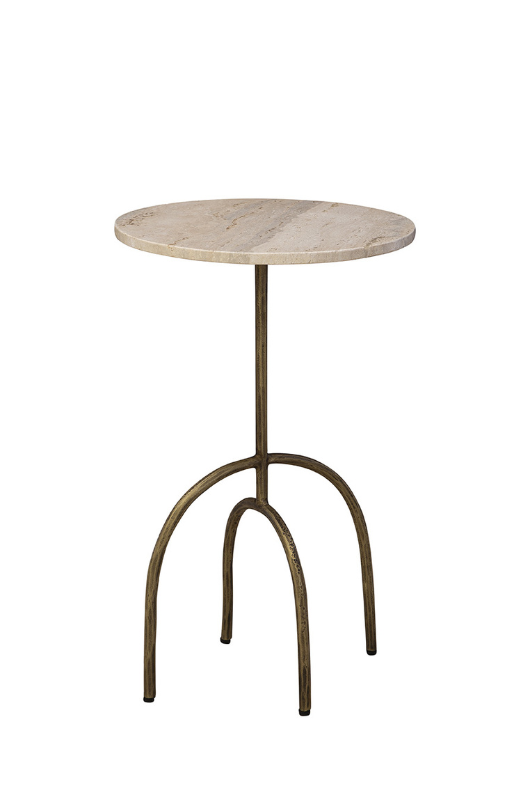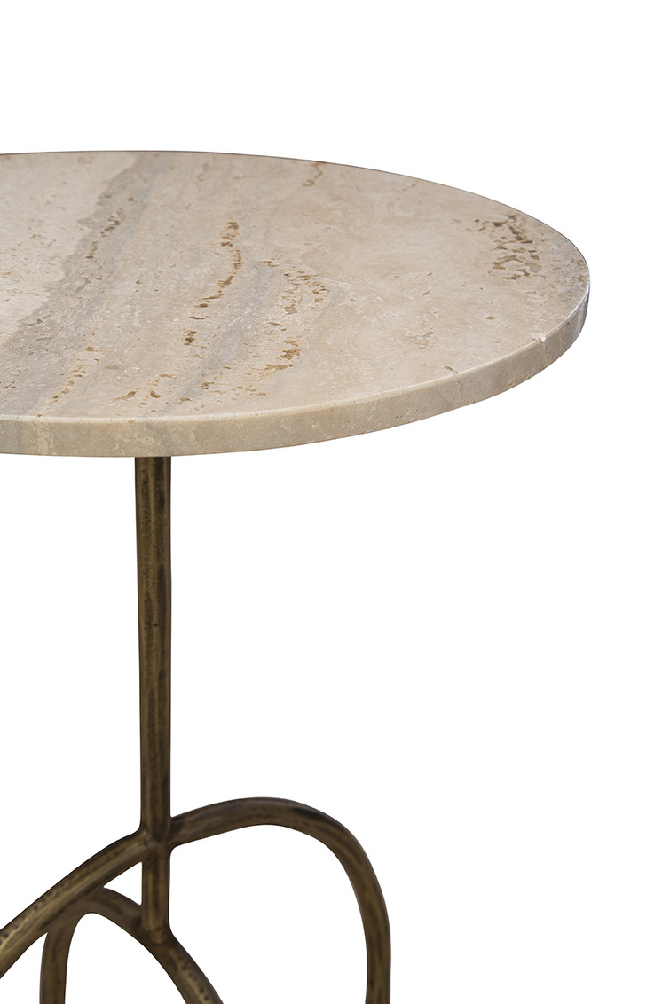 **Final Sale - All Items are sold as is, no returns unless damaged upon receipt. The Jasper Side Table combines modern design with artistic flair. Featuring a creamy marble circular top, it is supported by an antique brass sculptural base with elegantly arched legs. Perfect as a functional yet stylish accent piece, this table adds sophistication and character to any space.