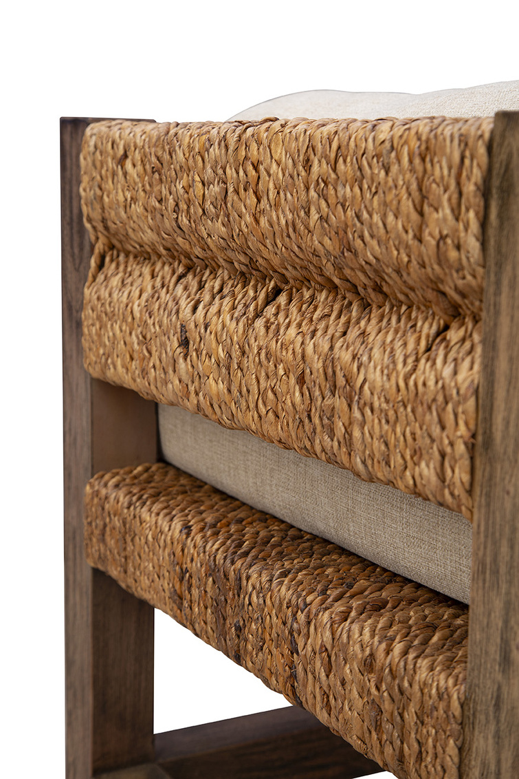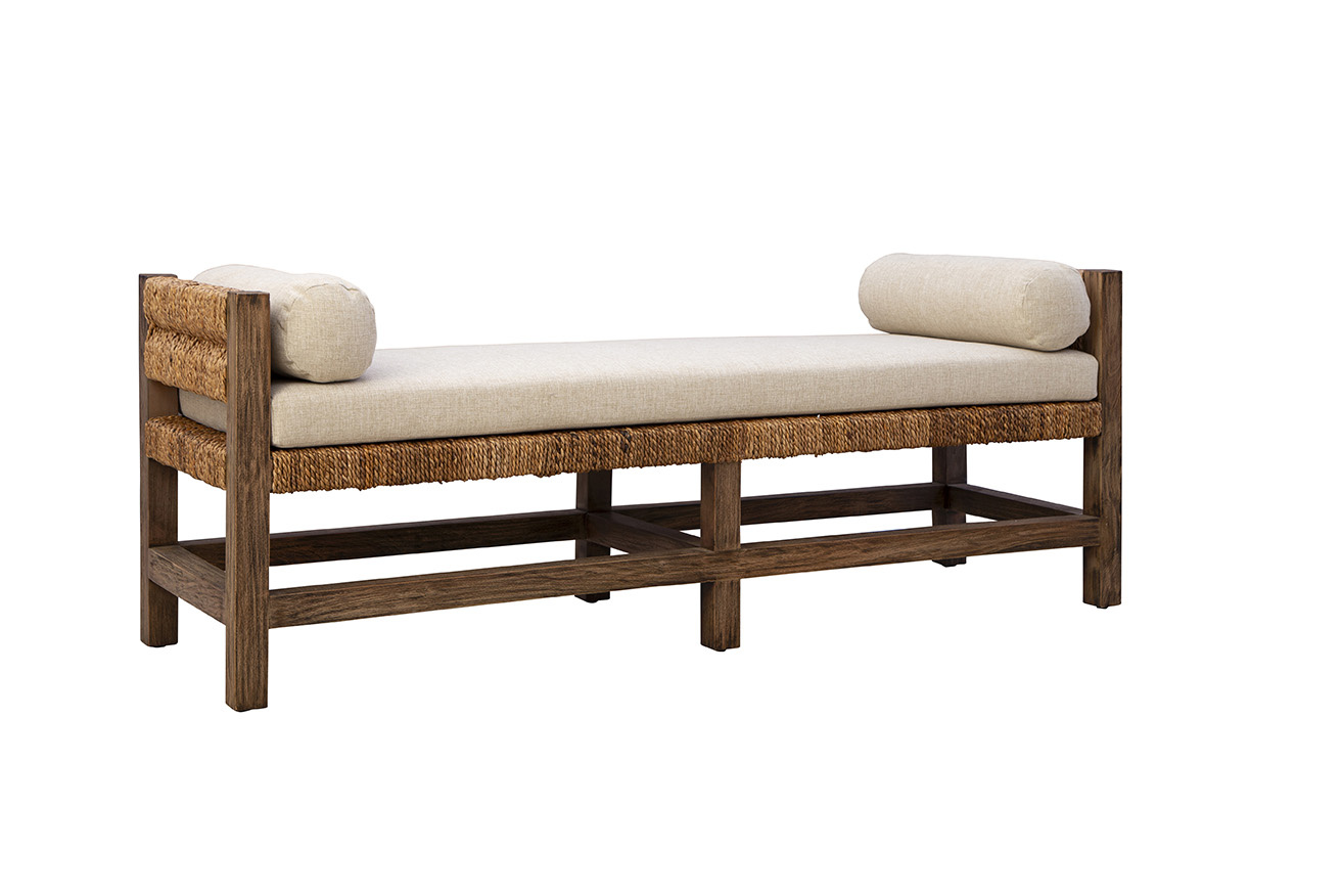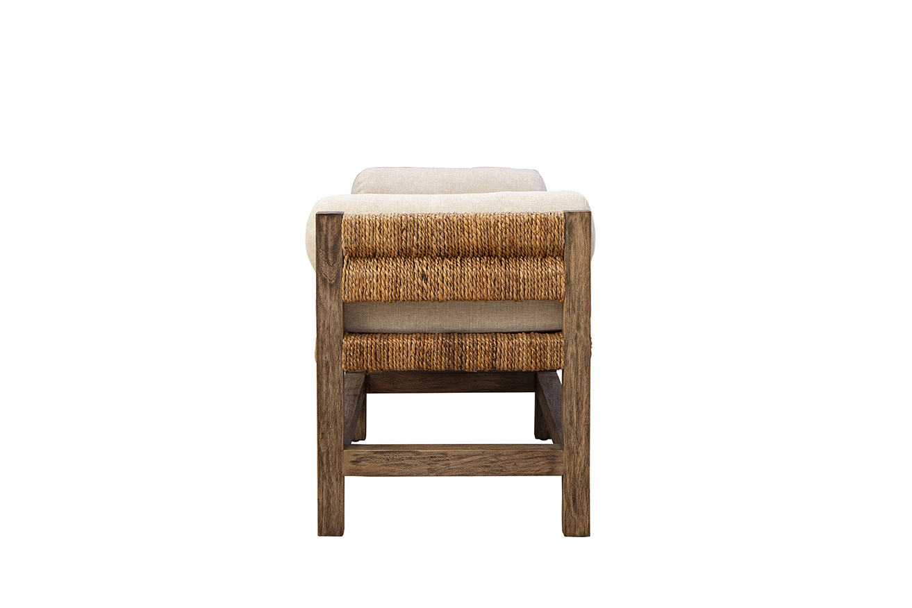 The Georgia Backless Bench combines natural materials with versatile style. Crafted from sustainably grown mahogany with a woven banana leaf seat, it’s topped with a performance linen blend cushion for added comfort. Perfect as an accent piece in entryways or at the foot of a bed, this bench brings an effortless, organic vibe to any room.