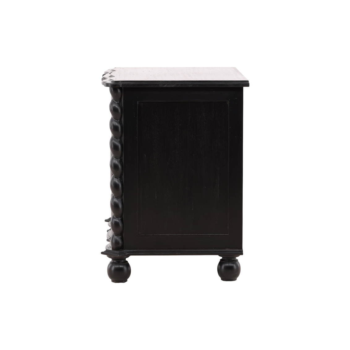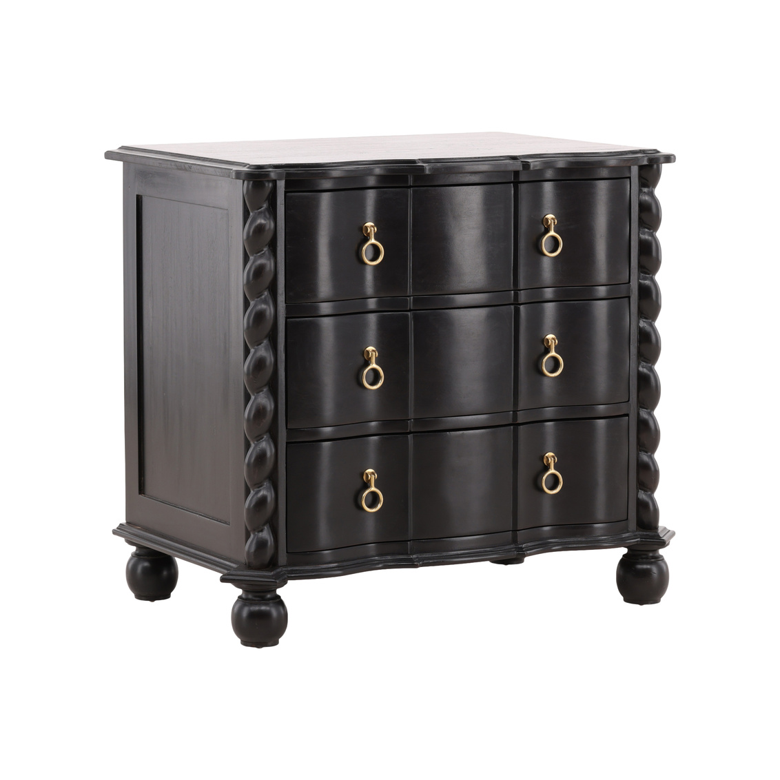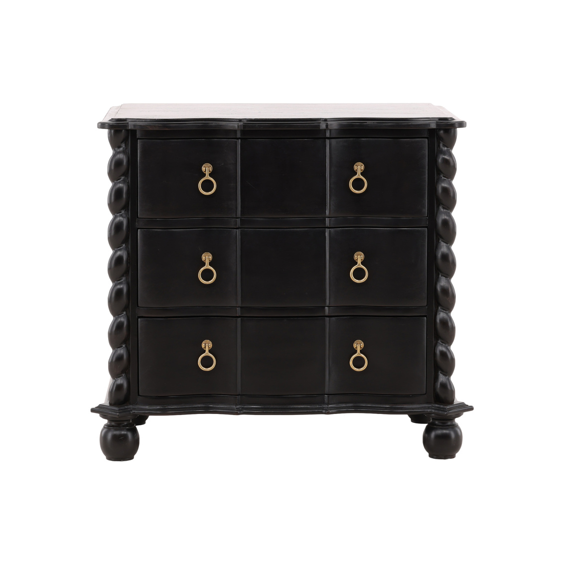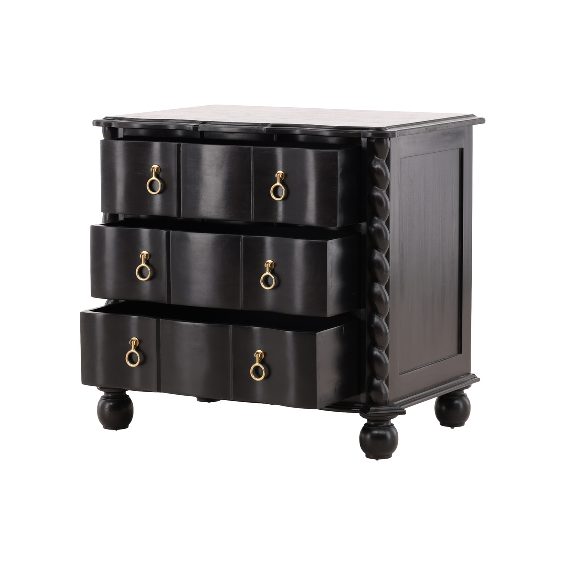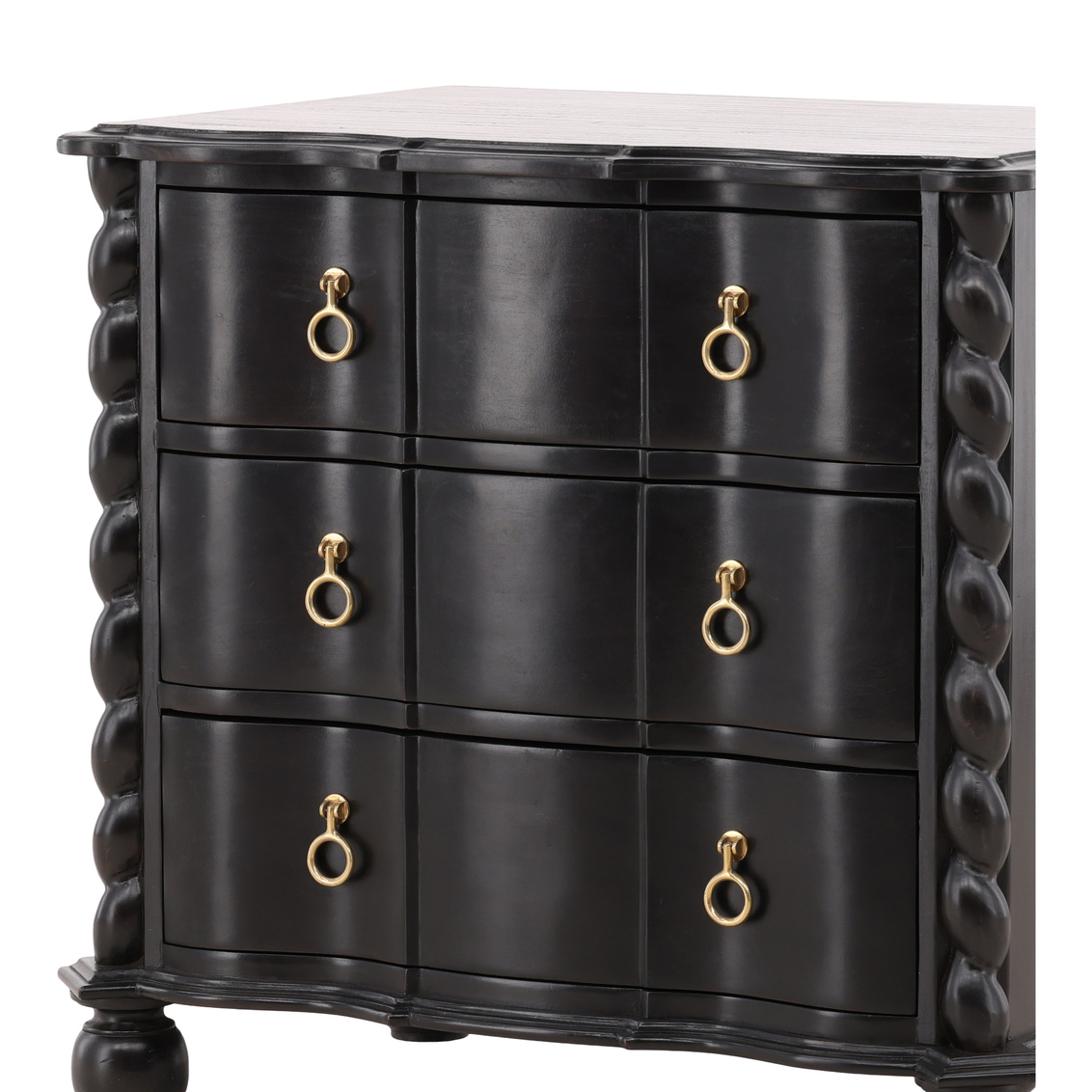 The Deeds Chest is a masterful blend of craftsmanship, elegance, and eco-conscious design. Constructed from sustainably grown mahogany, the chest features a rich, hand-applied black finish that highlights the natural beauty of the wood while adding a sophisticated, dramatic touch. Intricate twisted details on the edges and brass hardware give the piece a refined, timeless character that elevates any space. Perfect for storage or as a statement piece in the bedroom, living room, or hallway, the Deeds Chest combines functionality with artistry, offering ample storage space in a stylish, durable design that reflects both luxury and sustainability.