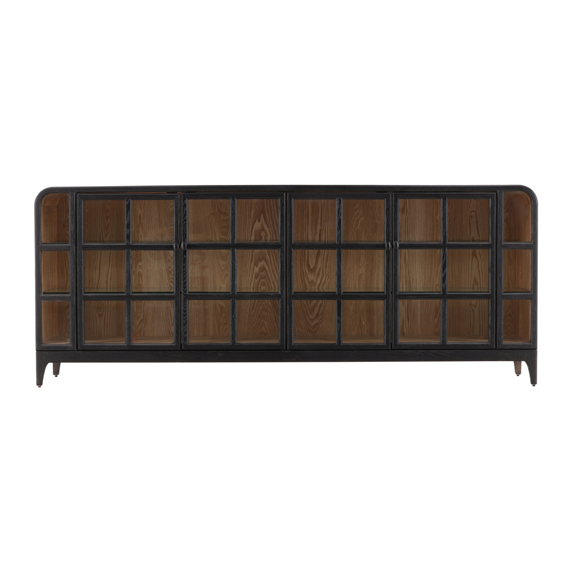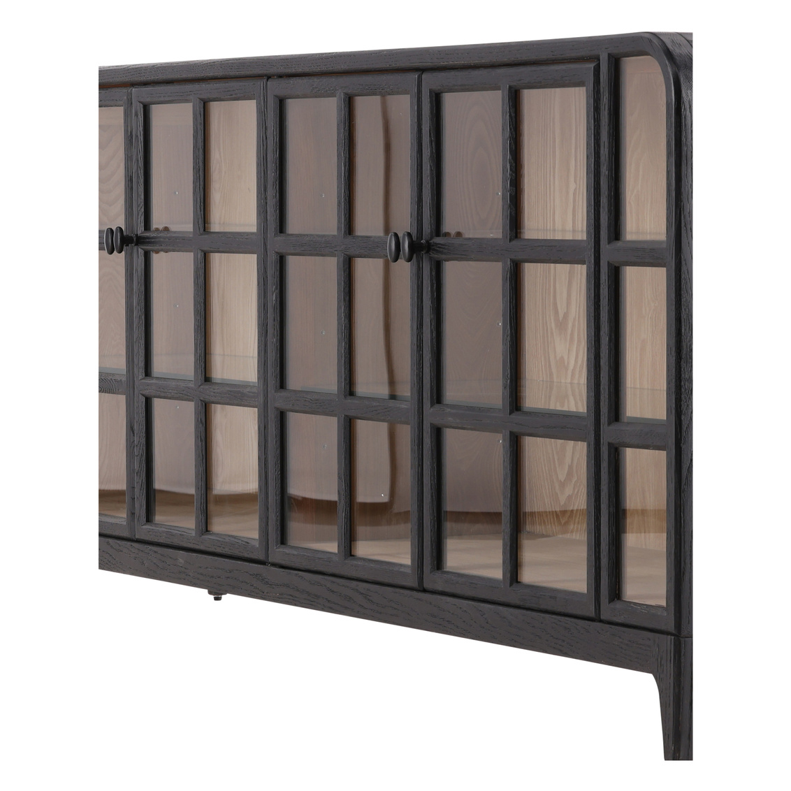 The Avora Sideboard is a sophisticated blend of oak and glass, finished in a rich deep chocolate tone on the exterior, with a natural wood finish behind four elegant glass doors. Its rounded edges along the top add a soft, refined touch, making it a versatile piece that combines modern elegance with timeless charm. Ideal for showcasing both style and storage, the Avora brings warmth and sophistication to any space.