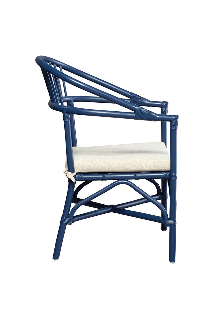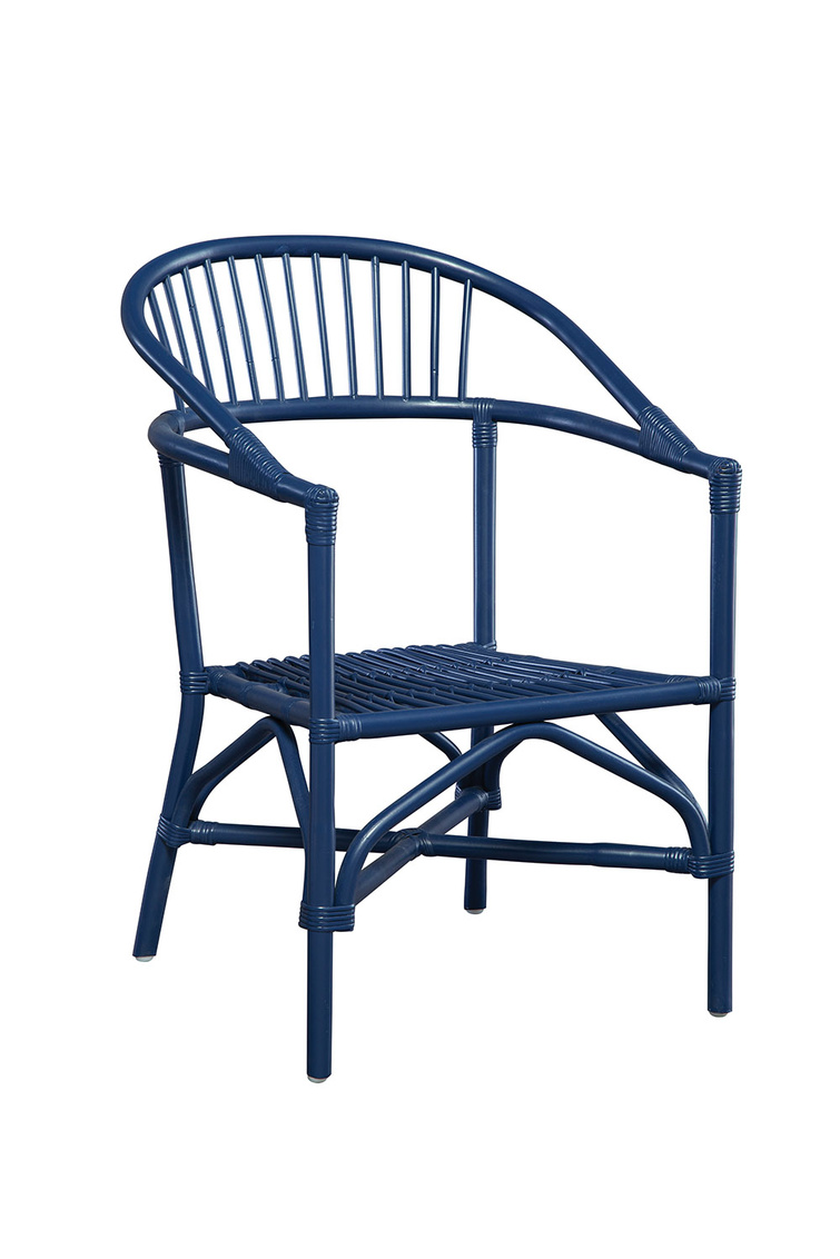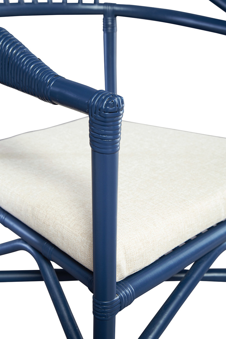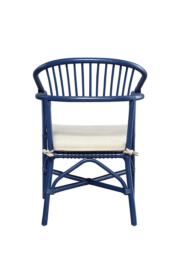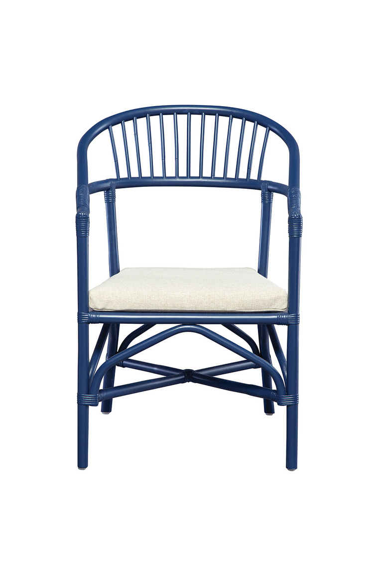 **Final Sale - All Items are sold as is, no returns unless damaged upon receipt. An updated nod to the timeless comb back chair, this blue beauty is streamlined to enhance today's interiors. While small scaled, it's perfect for dining or an occasional pull up, the curved back and removable padded performance fabric seat make this chair one you won't want to leave any time soon.