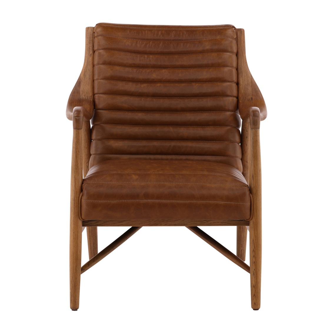 The Hawkins Occasional Chair blends timeless materials with relaxed sophistication. Upholstered in rich brown leather, the generously cushioned seat offers both comfort and durability, while the solid oak frame adds warmth and natural character. Clean lines and classic craftsmanship make this chair a versatile accent for living rooms, offices, or reading nooks.