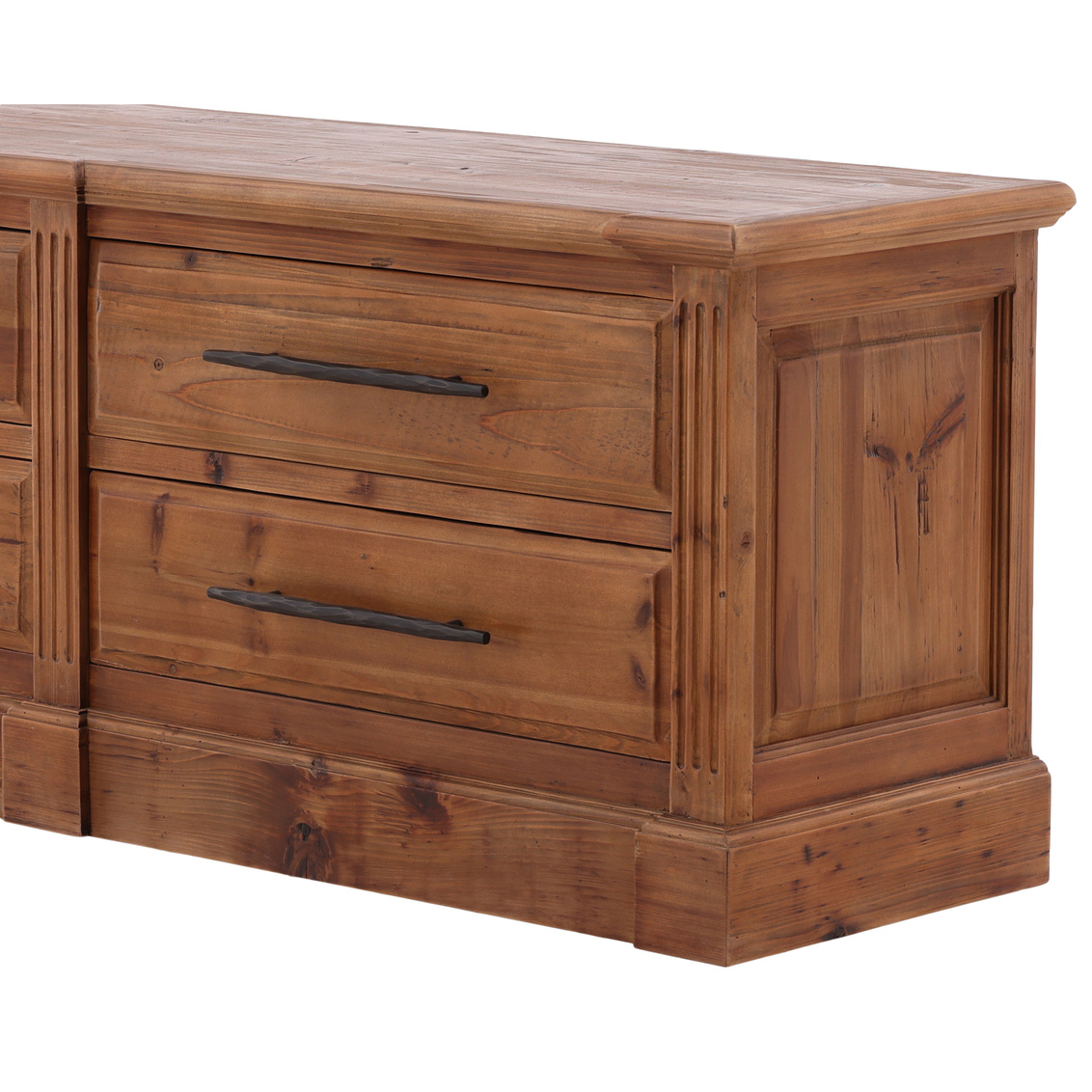 The Butler Media Chest blends rustic character with clean, functional design. Crafted from reclaimed fir, the piece highlights the natural beauty and texture of the wood, with unique grain patterns and subtle variations that make each chest one of a kind. Four spacious drawers provide ample storage, while sleek bar handles add a simple, modern touch.
