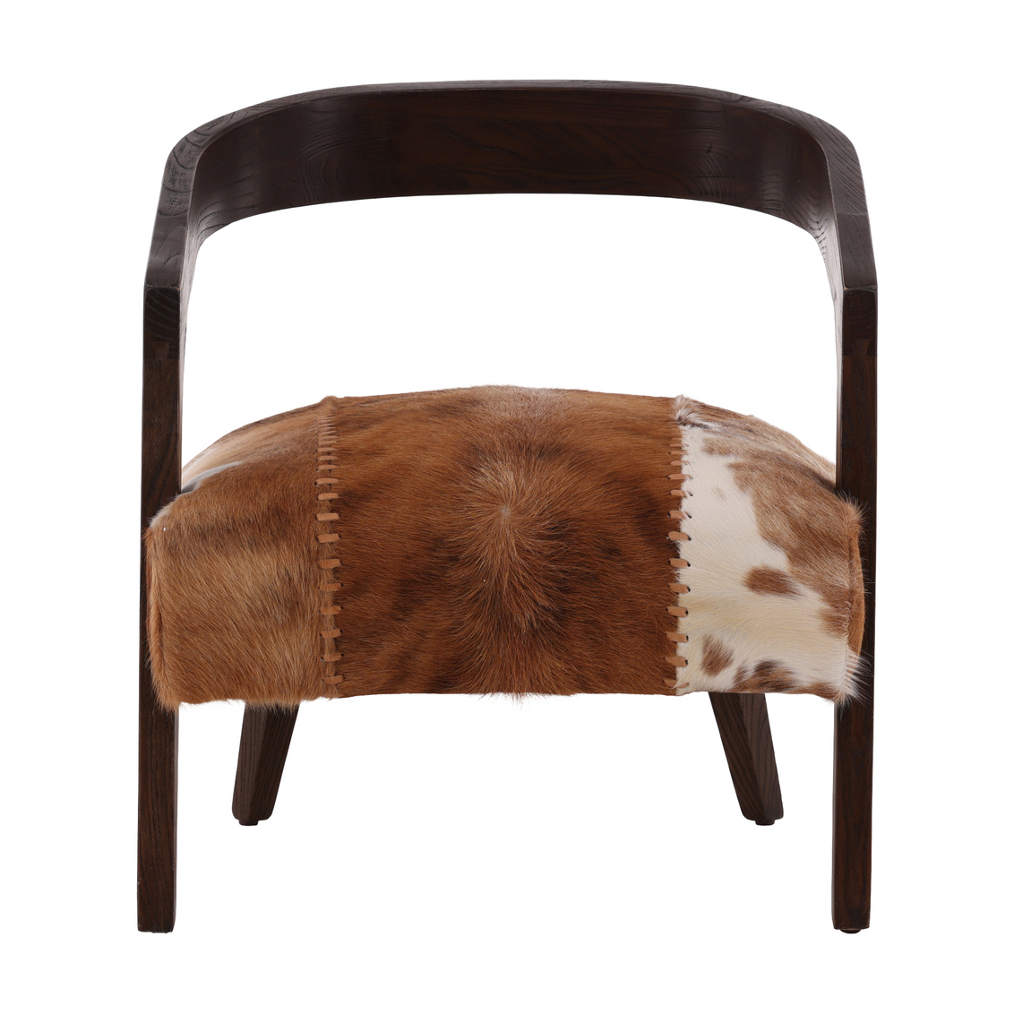 The Bonner Occasional Chair offers relaxed comfort with distinctive natural character. Crafted from solid alder, this low-sitting chair features a seat upholstered in genuine hair-on-hide, bringing rich texture and a bold, organic look to the design. Because each hide is unique, no two chairs will have the exact same pattern, making every piece truly one of a kind. "1) Keep away from heat source, prevent scratching, moisture-proof, direct sunlight, Wipe up spills immediately on the furniture. 2) Hairhide surfaces should be dusted regularly with a dry damp soft cloth;Exposure to liquid spills should be avoided ;Use the Professional Fur Care Kit only and require brushing to restore appearance, Keep away from direct or harsh sunlight."