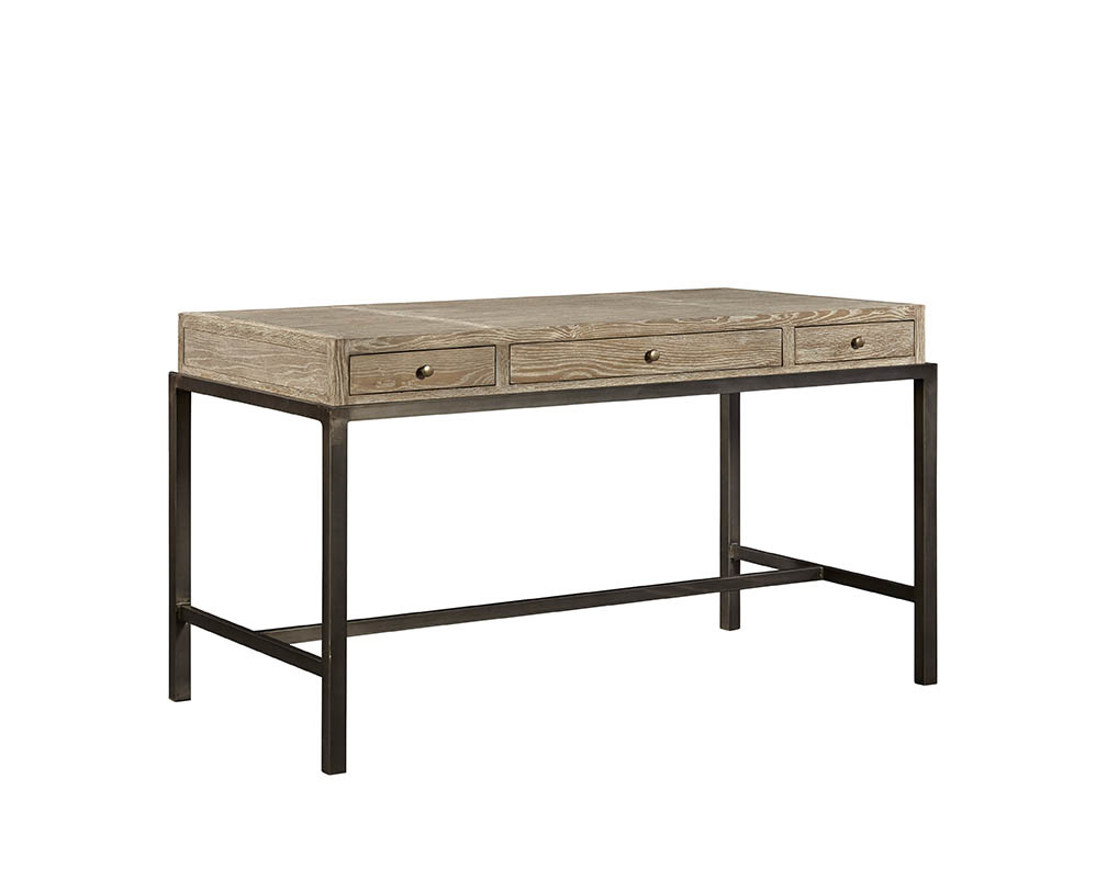 **Final Sale - All Items are sold as is, no returns unless damaged upon receipt. Utilizing reclaimed oak and iron, this well-scaled desk is sized just right for today's homes. The top has a soft natural finish, and three drawers to hold all your "Post-it" notes and stray pens. Looks even better paired with the single cabinet, 20-191 or double cabinet, 20-150 or the media console, 20-227.