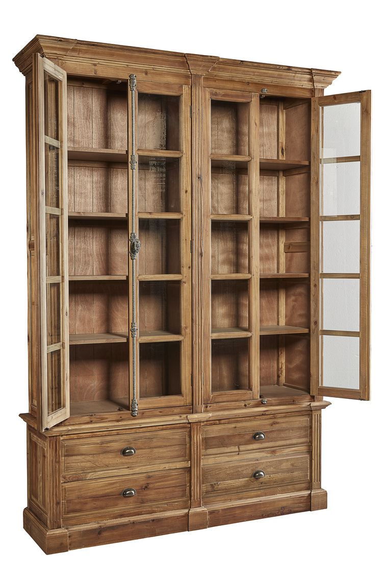 Large cabinet in a beautiful finish with antique hardware. Shelves are removable; not adjustable.